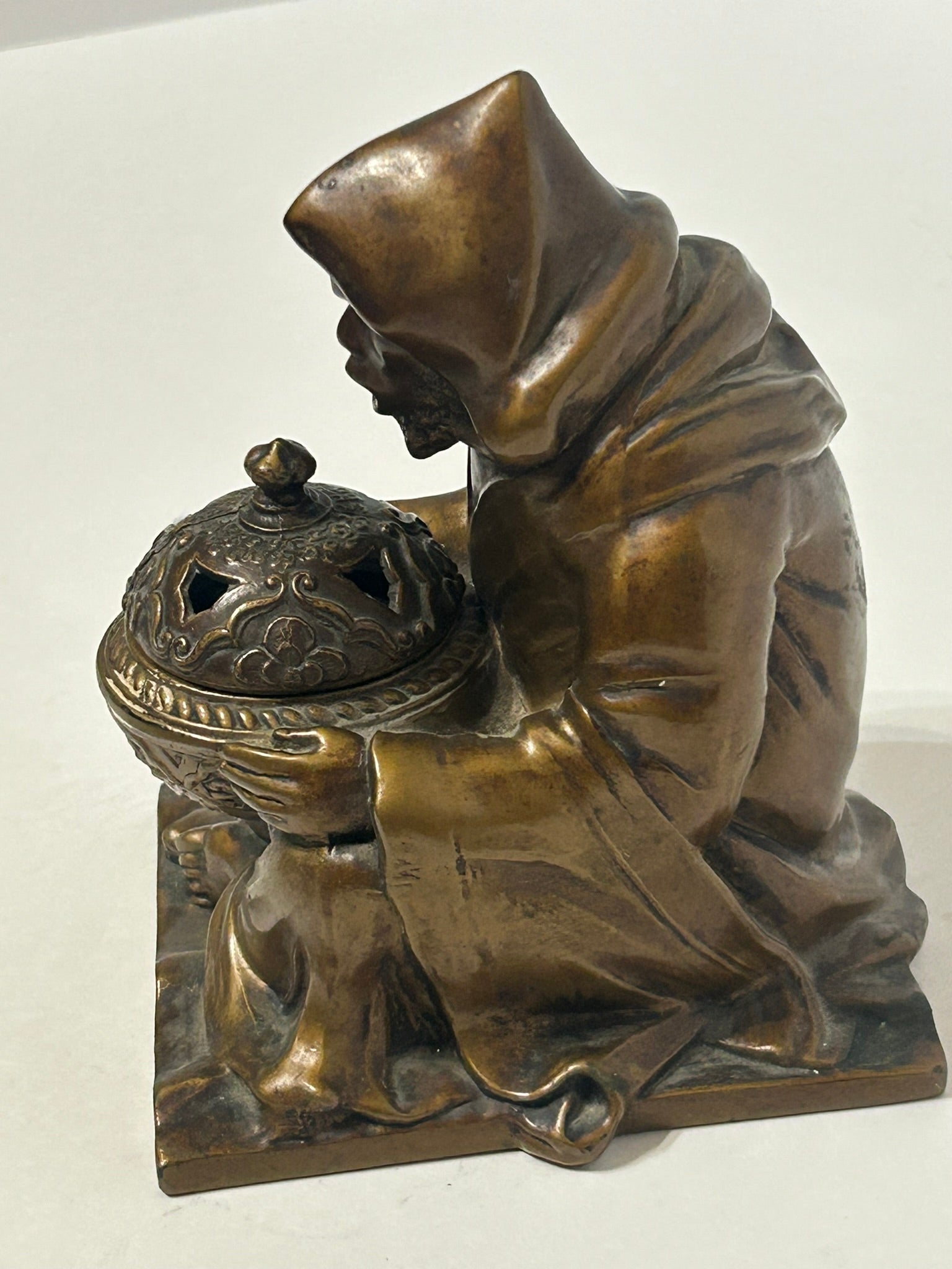 FIGURAL INCENSE BURNER OF ROBED MAN 1930'S