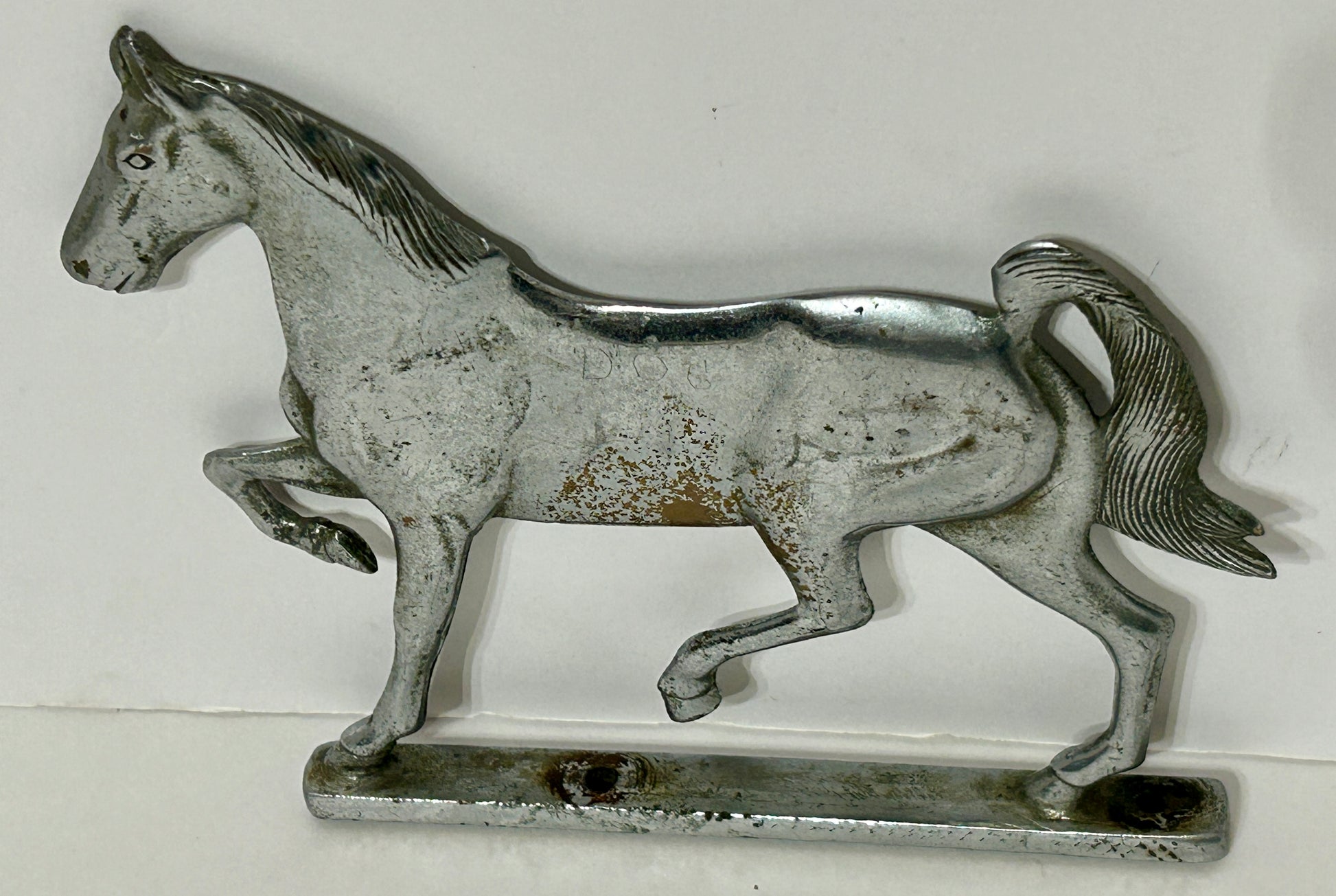 ANTIQUE NICKEL PLATED IRON HORSE 5 3/4" TALL X 6" WIDE. SHIPPING IS EXTRA COST SO CALL OR TEXT TO FIND OUT HOW MUCH SHIPPING WILL COST