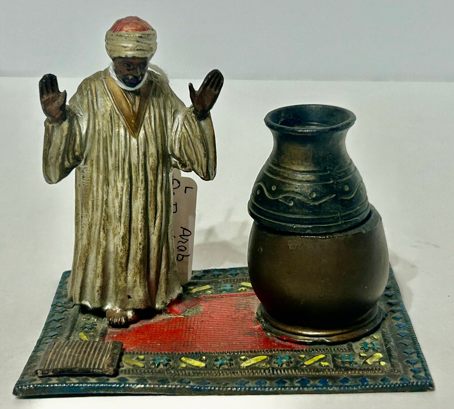 FIGURAL METAL INCENSE BURNER OF ARAB ON RUG