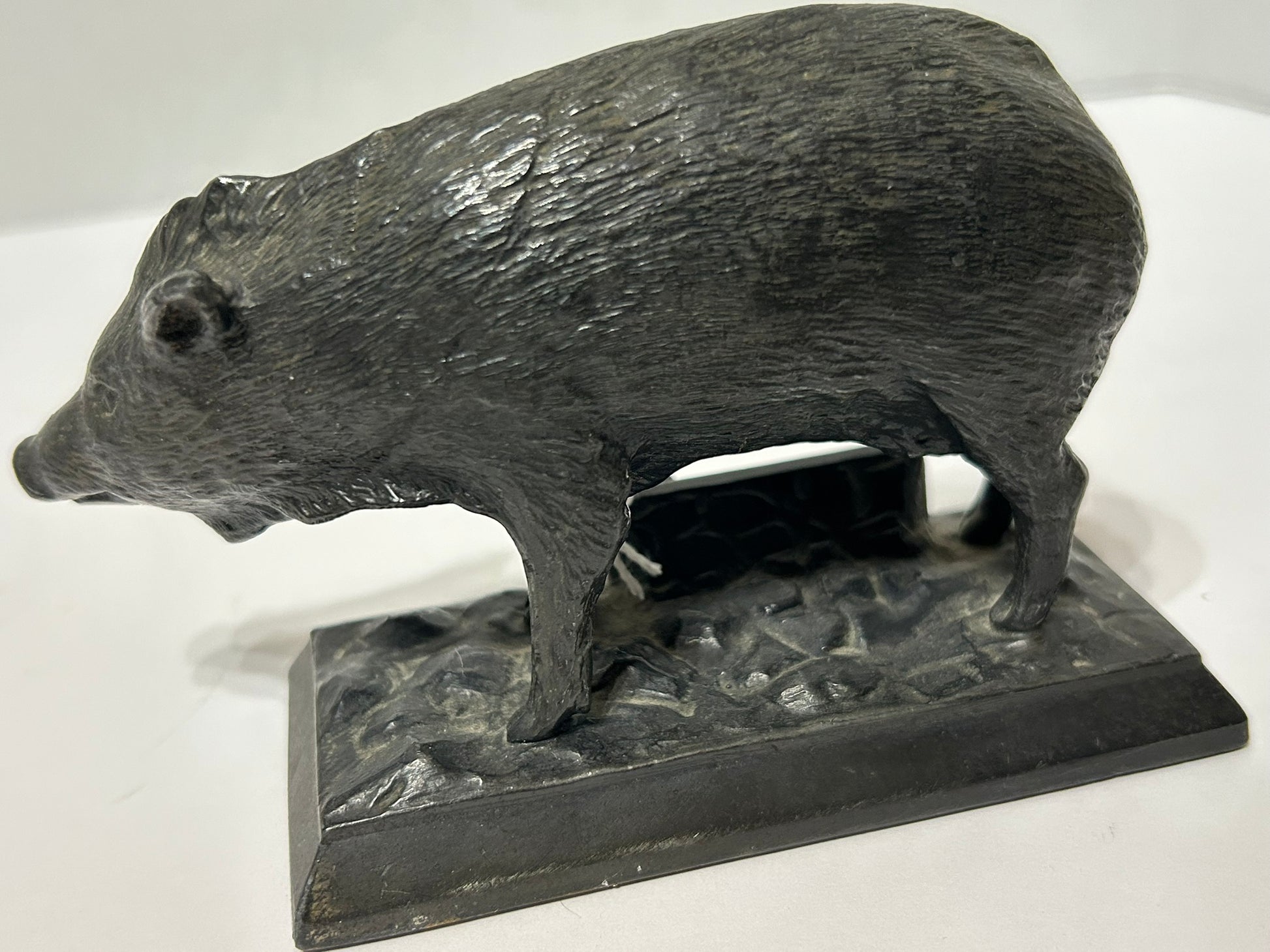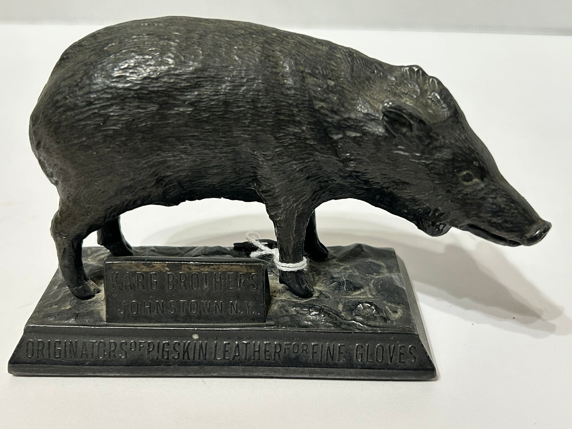 FIGURAL METAL WHART HOG ADVERTISING PAPERWEIGHT FOR KARG BROTHERS GLOVES 5 1/2" LONG X 3 1/2" TALL. CALL OR TEXT FOR MORE INFORMATION