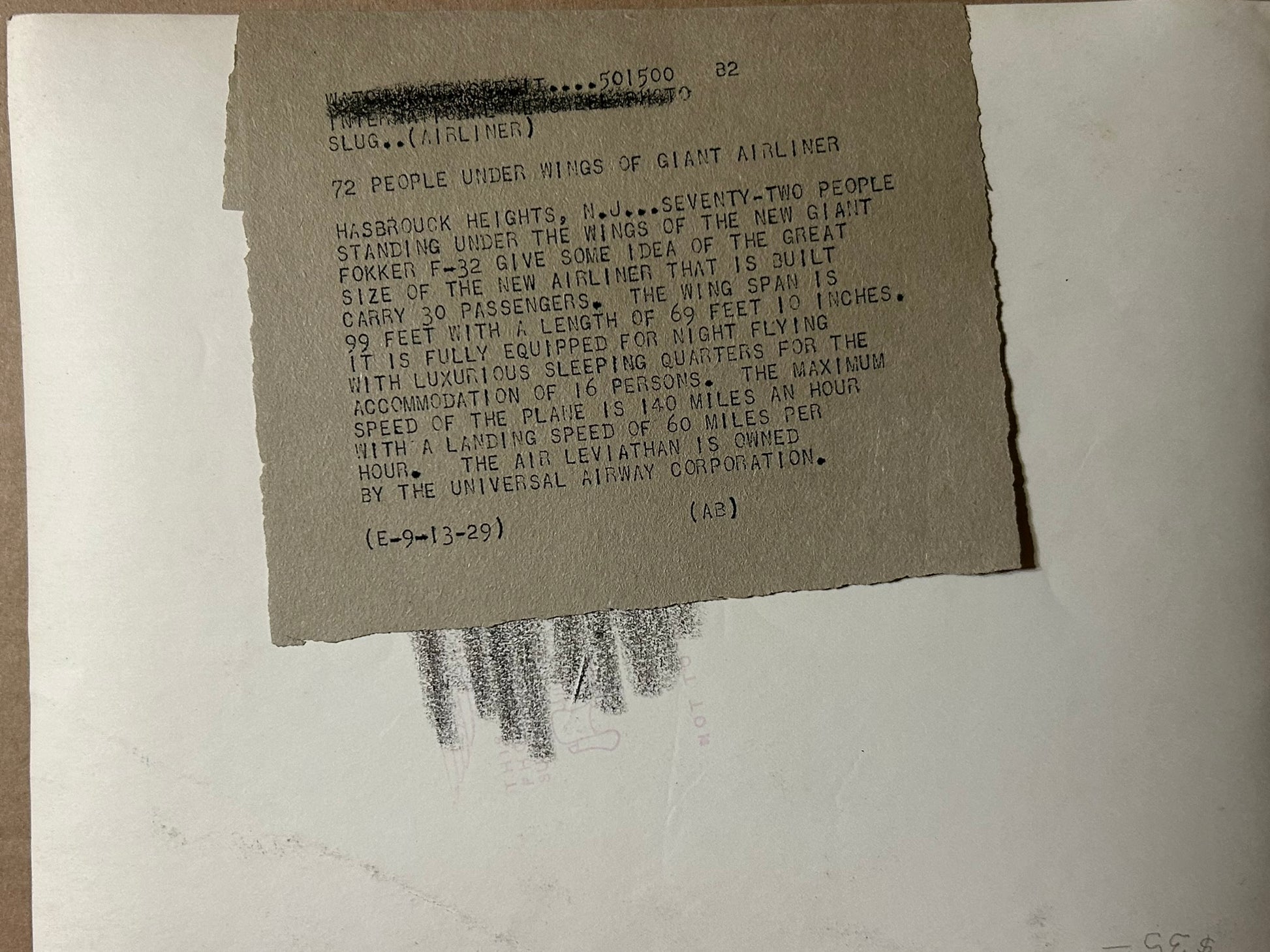 FOKKER F-32 GIANT AIRLINER WITH 72 PEOPLE STANDING UNDER THE WINGS IN 1929