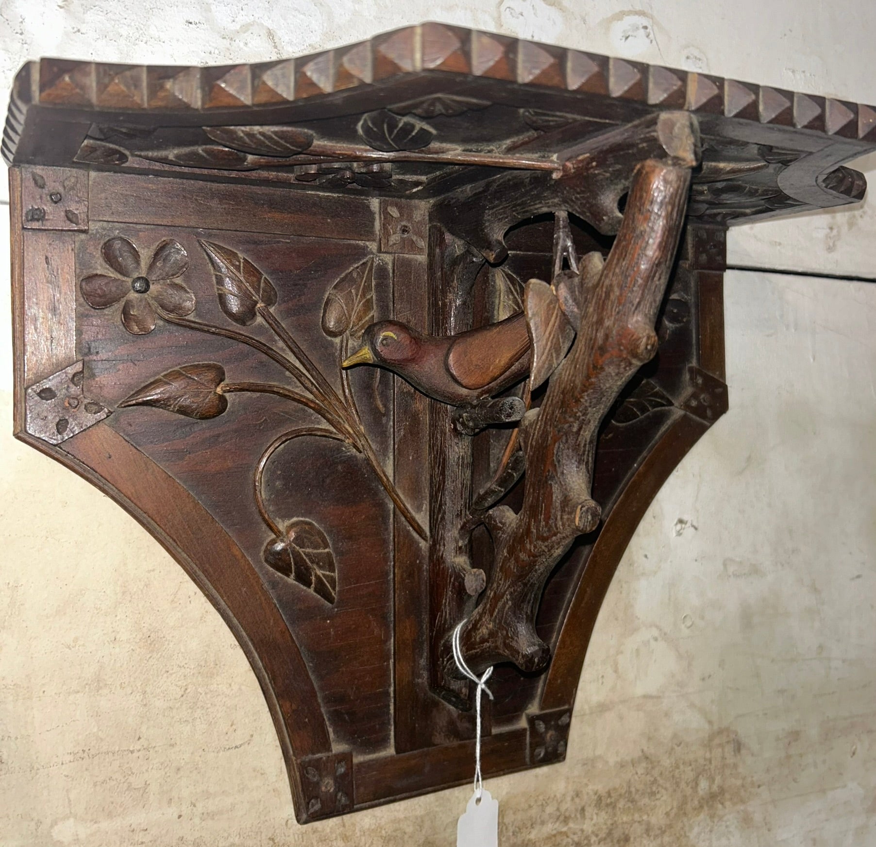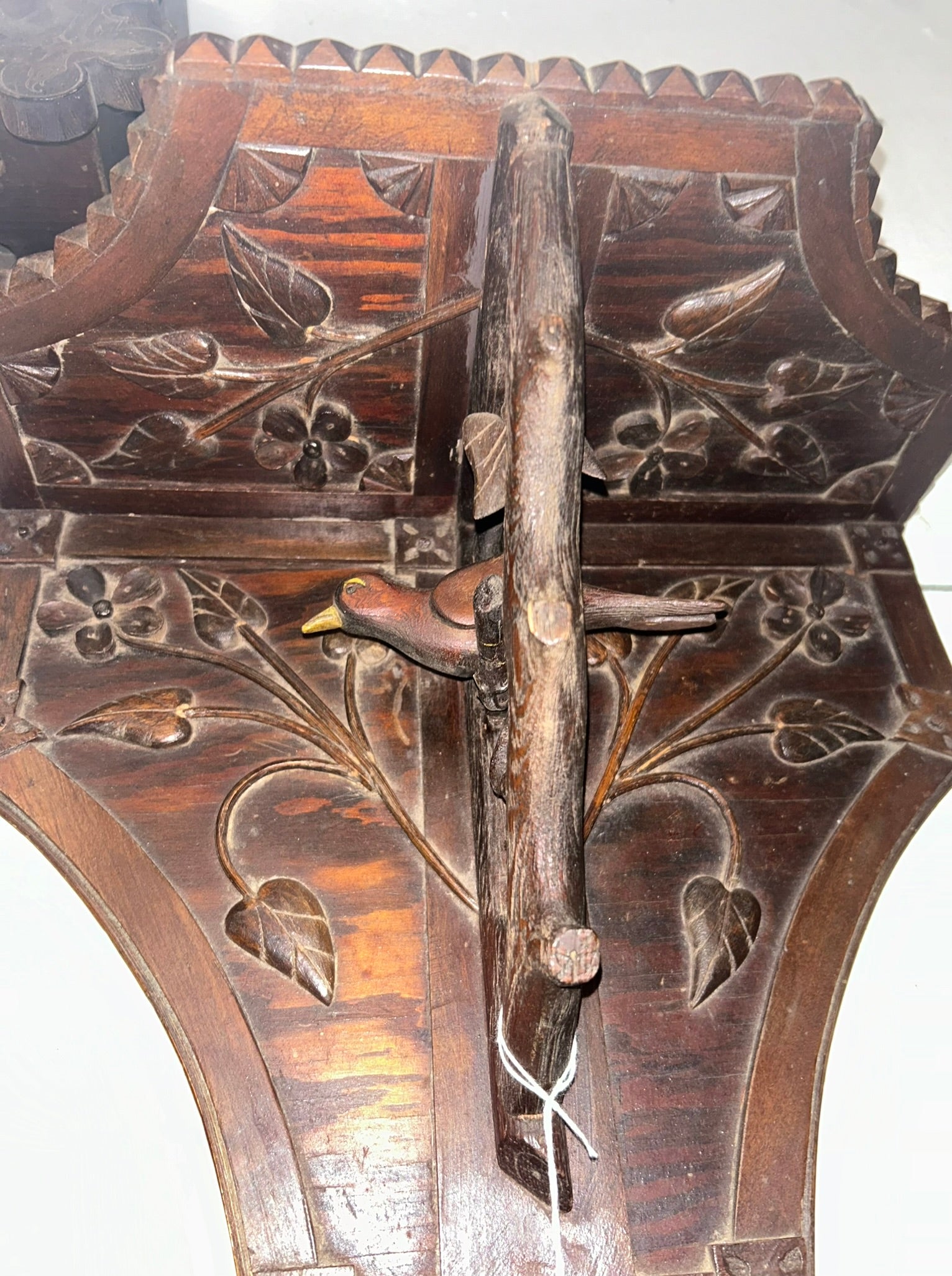 FOLK ART ANTIQUE CARVED WOOD SHELF WITH BIRD 12" TALL X 15" WIDE. CALL OR TEXT FOR MORE INFORMATION