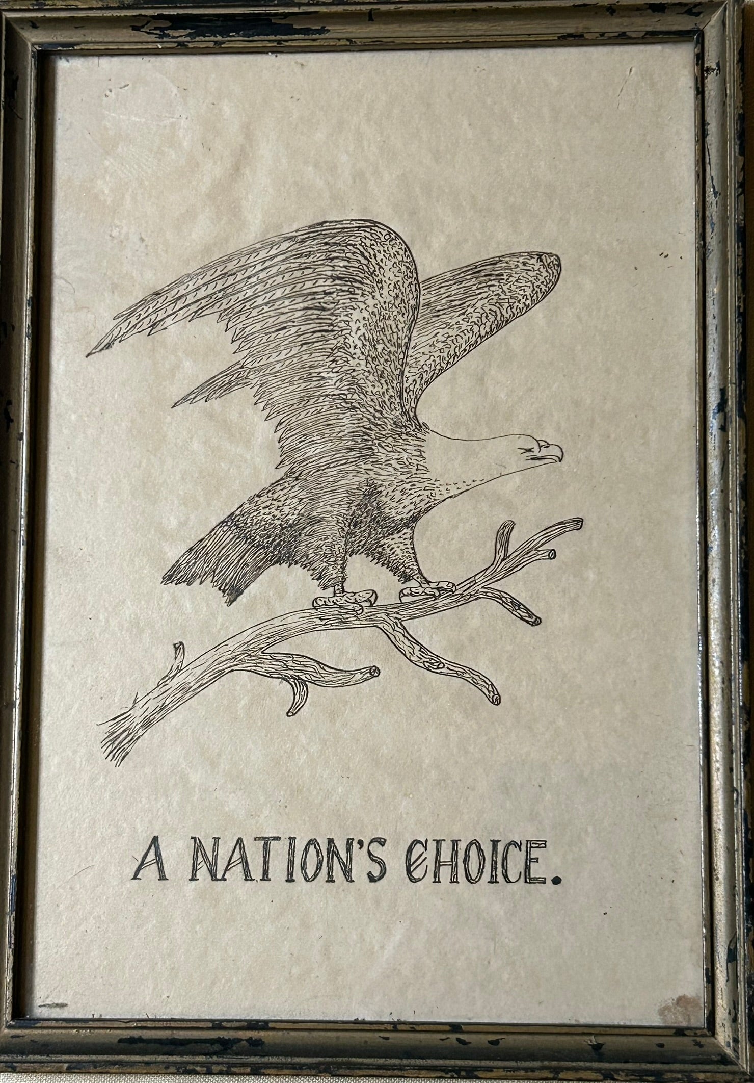 FOLK ART ANTIQUE PEN & INK DRAWING OF EAGLE