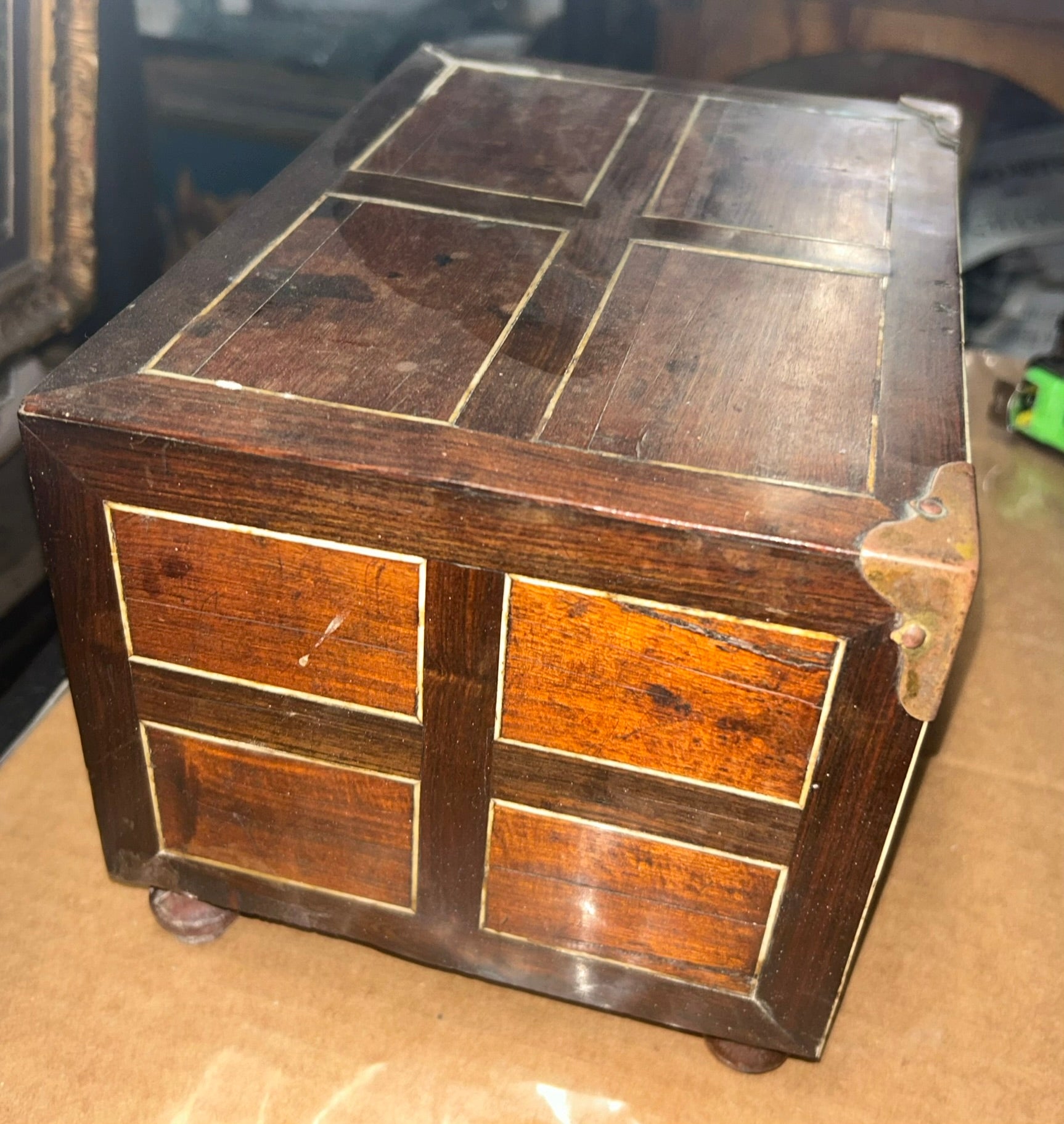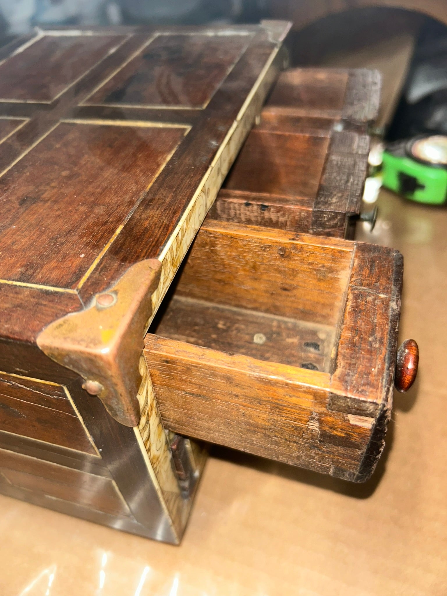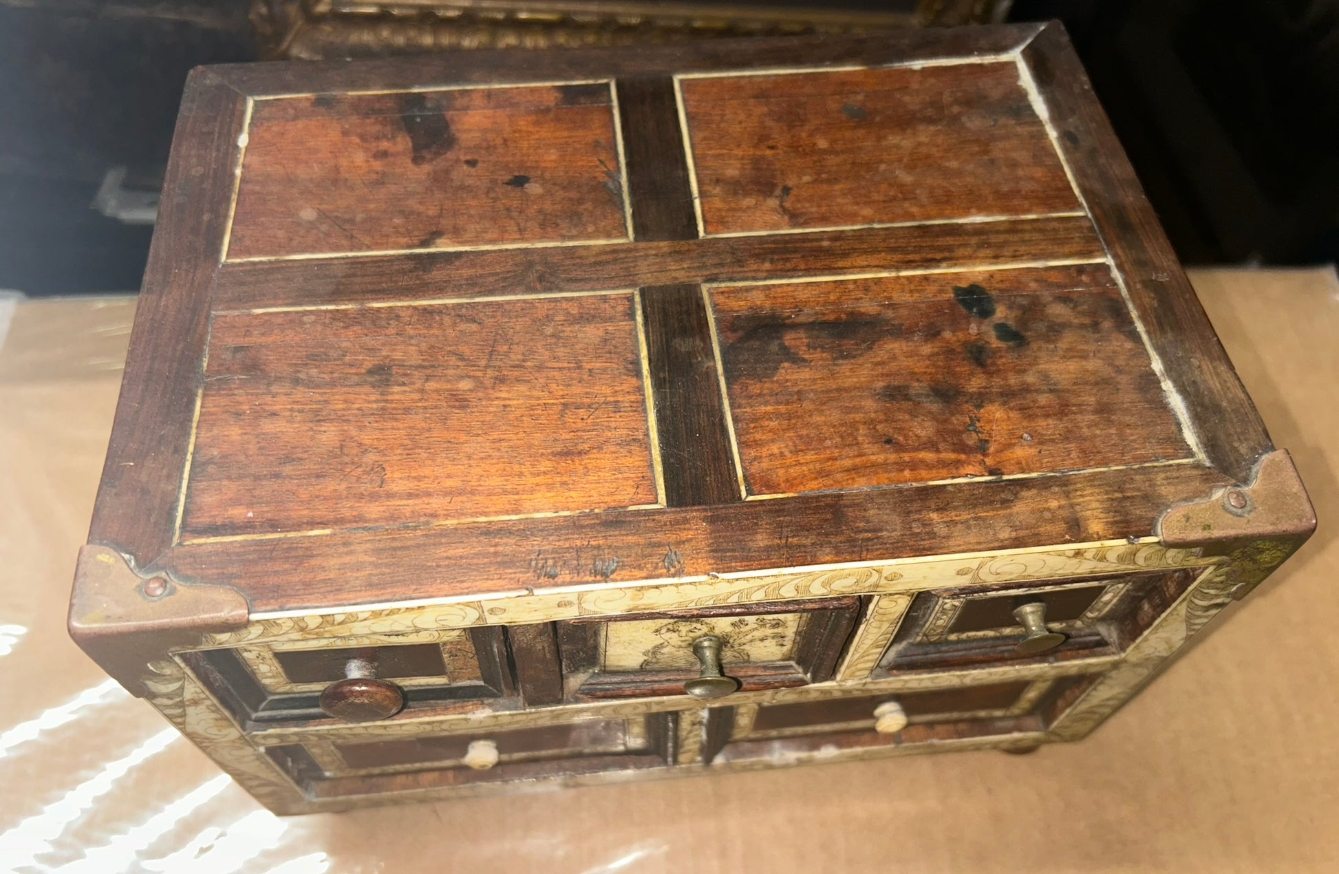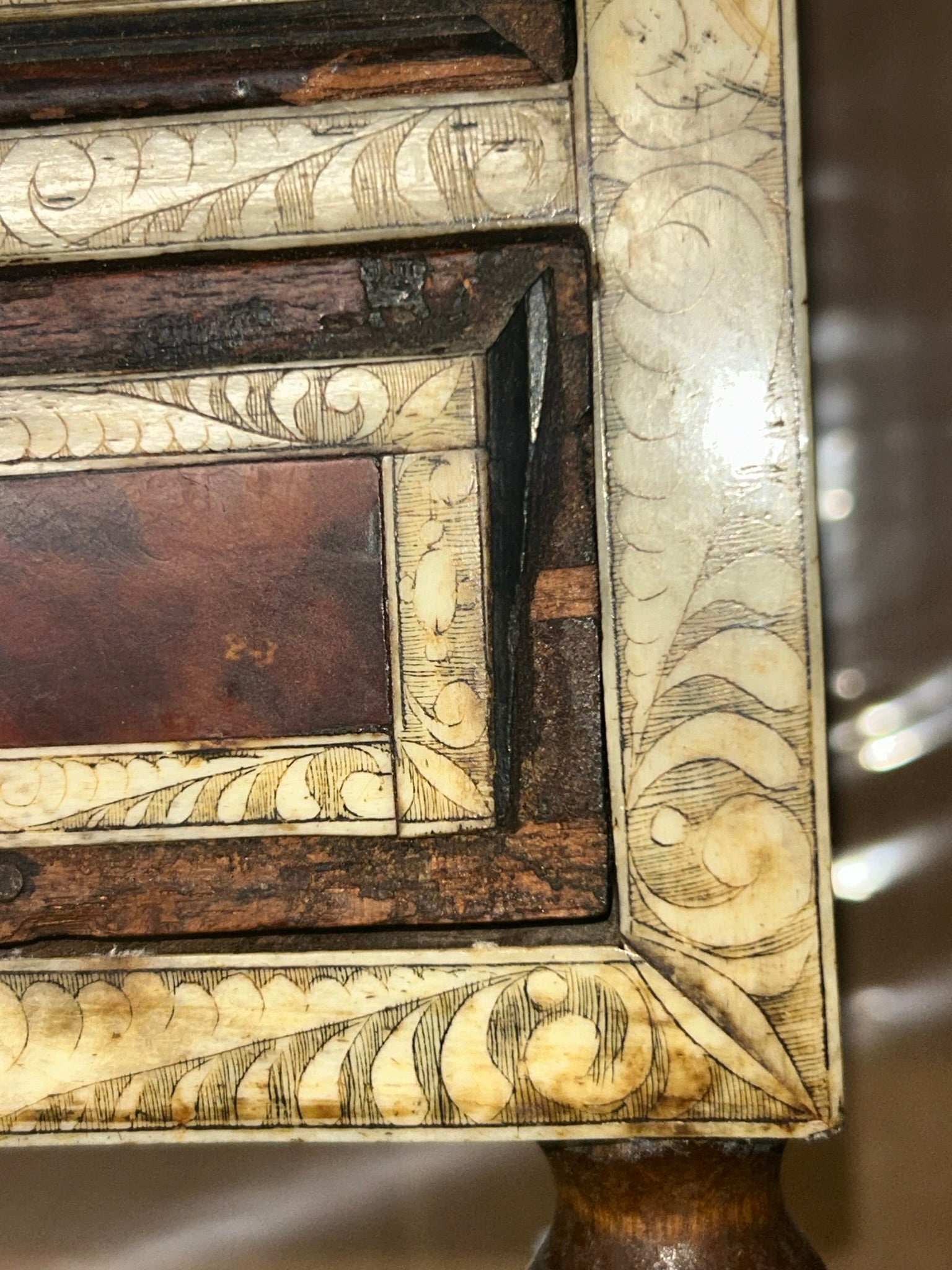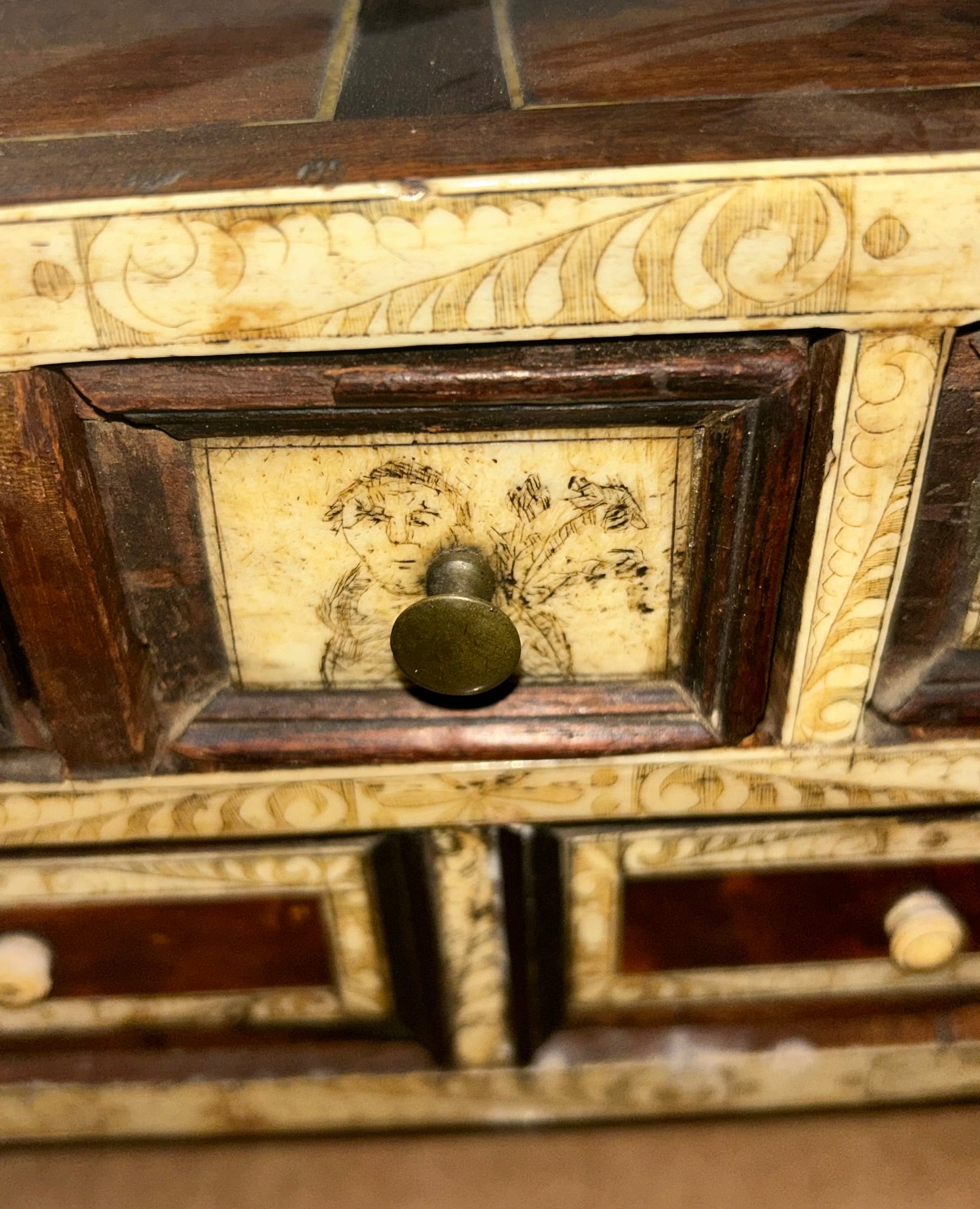FOLK ART ANTIQUE SCRIMSHAW AND WOOD CABINET 9" WIDE X 6" TALL X 6 1/2" DEEP. CALL OR TEXT FOR MORE INFORMATION