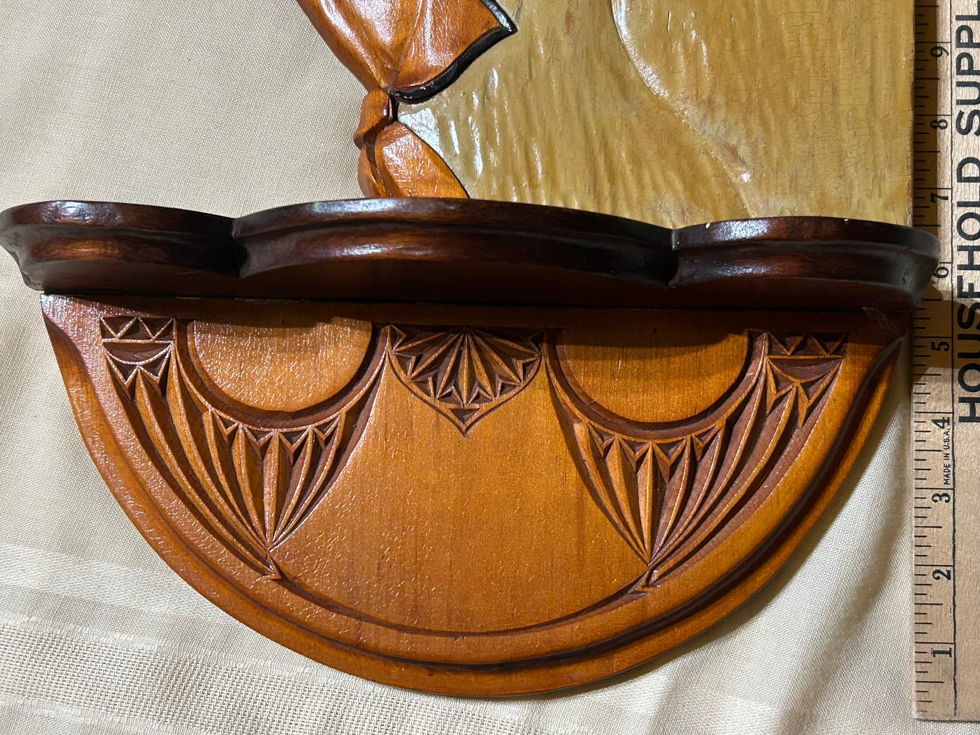 FOLK ART CARVED WOMANS HEAD SHELF DATED 1933