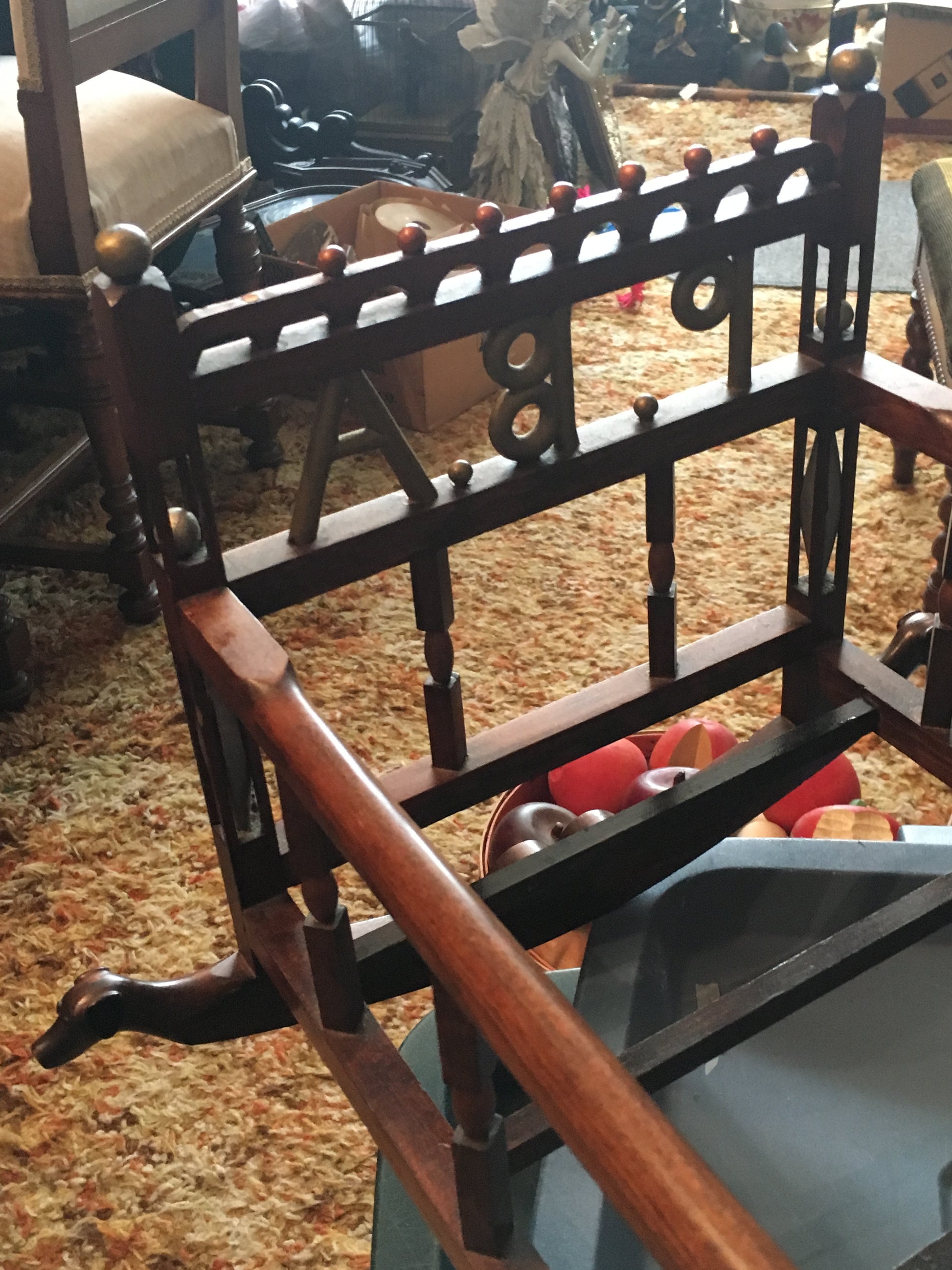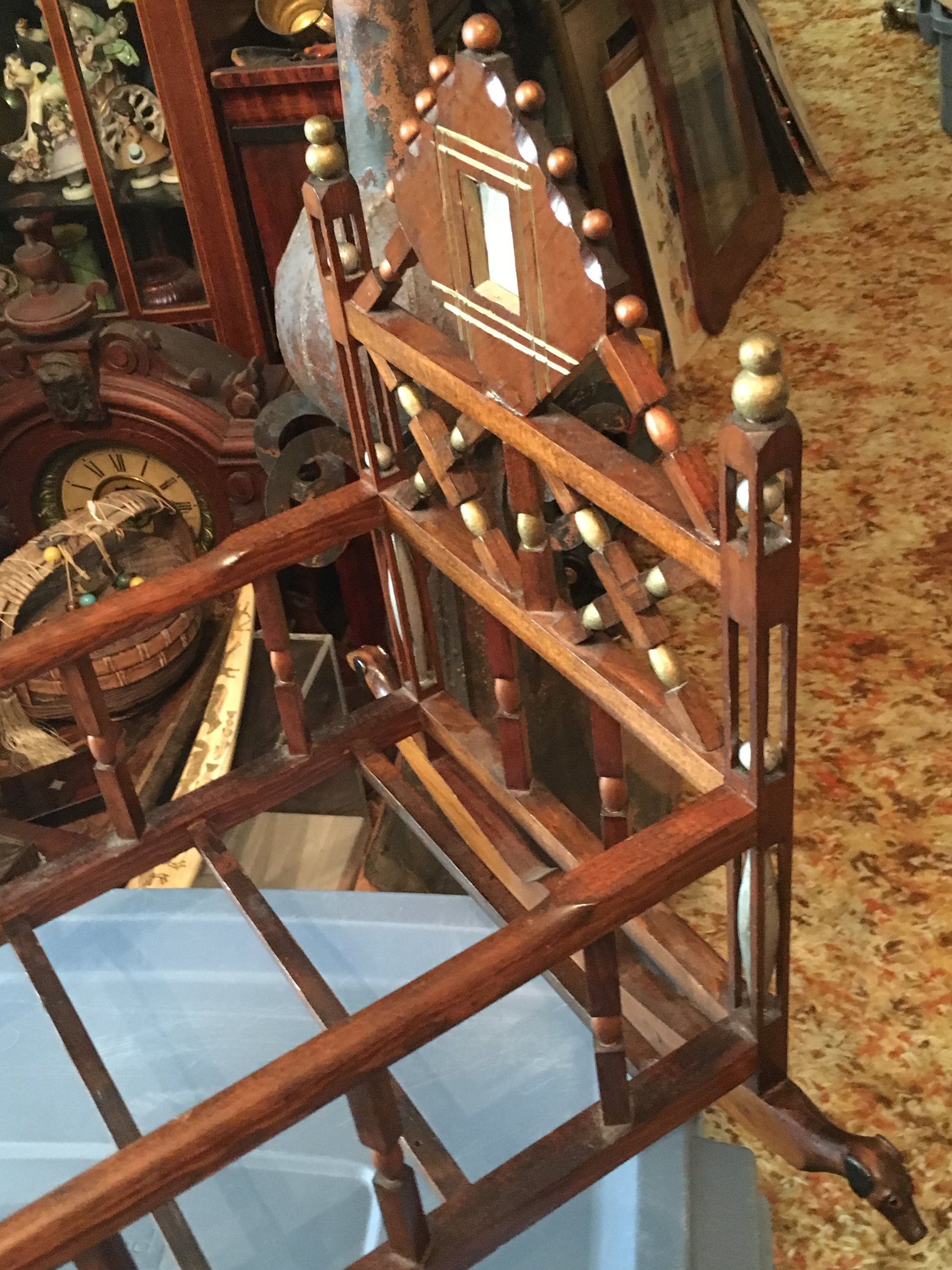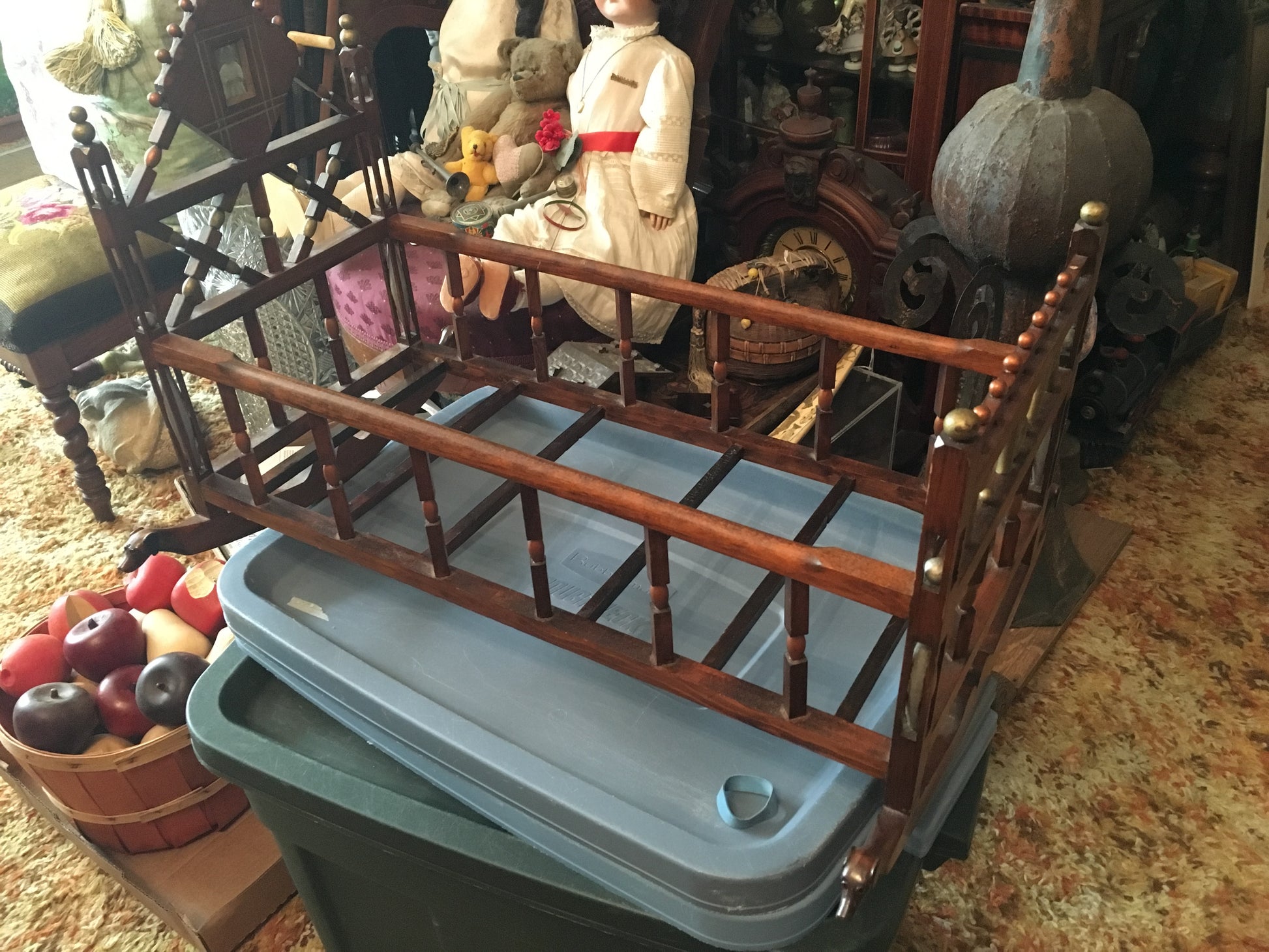 FOLK ART EARLY DOLL CRADLE WITH BALL CAGES AND CARVED DOGS PLUS MUCH MORE