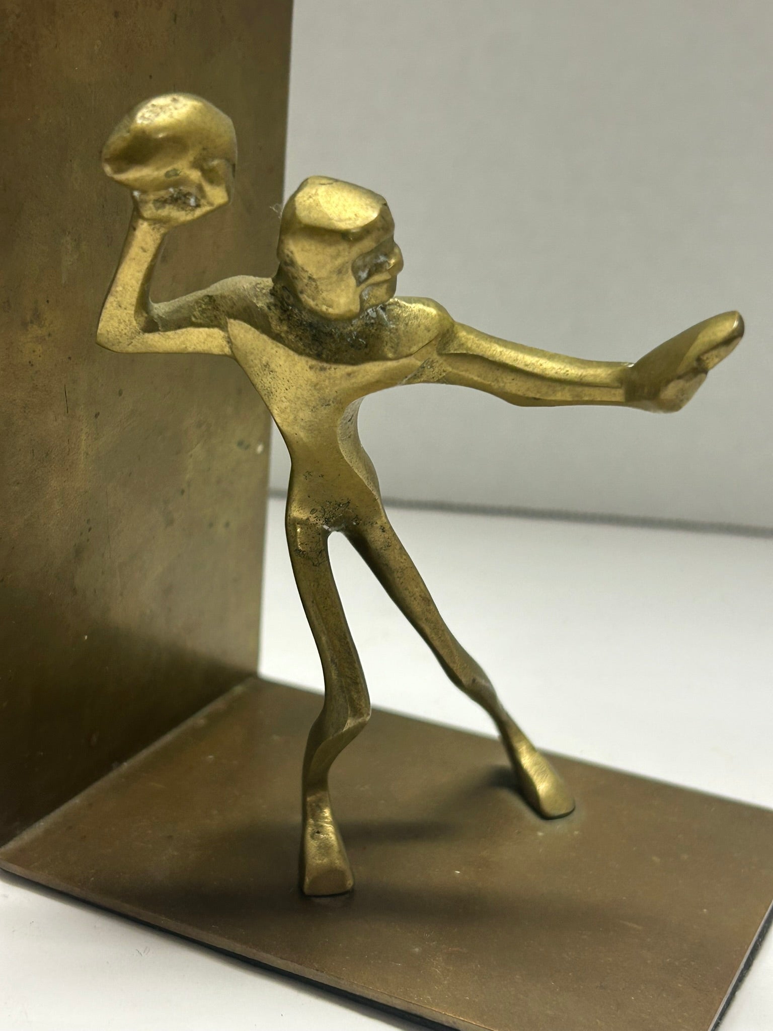 MODERN DESIGN FOOTBALL PLAYER BRASS BOOKENDS 7" TALL X 3" WIDE. CALL OR TEXT FOR MORE INFORMATION