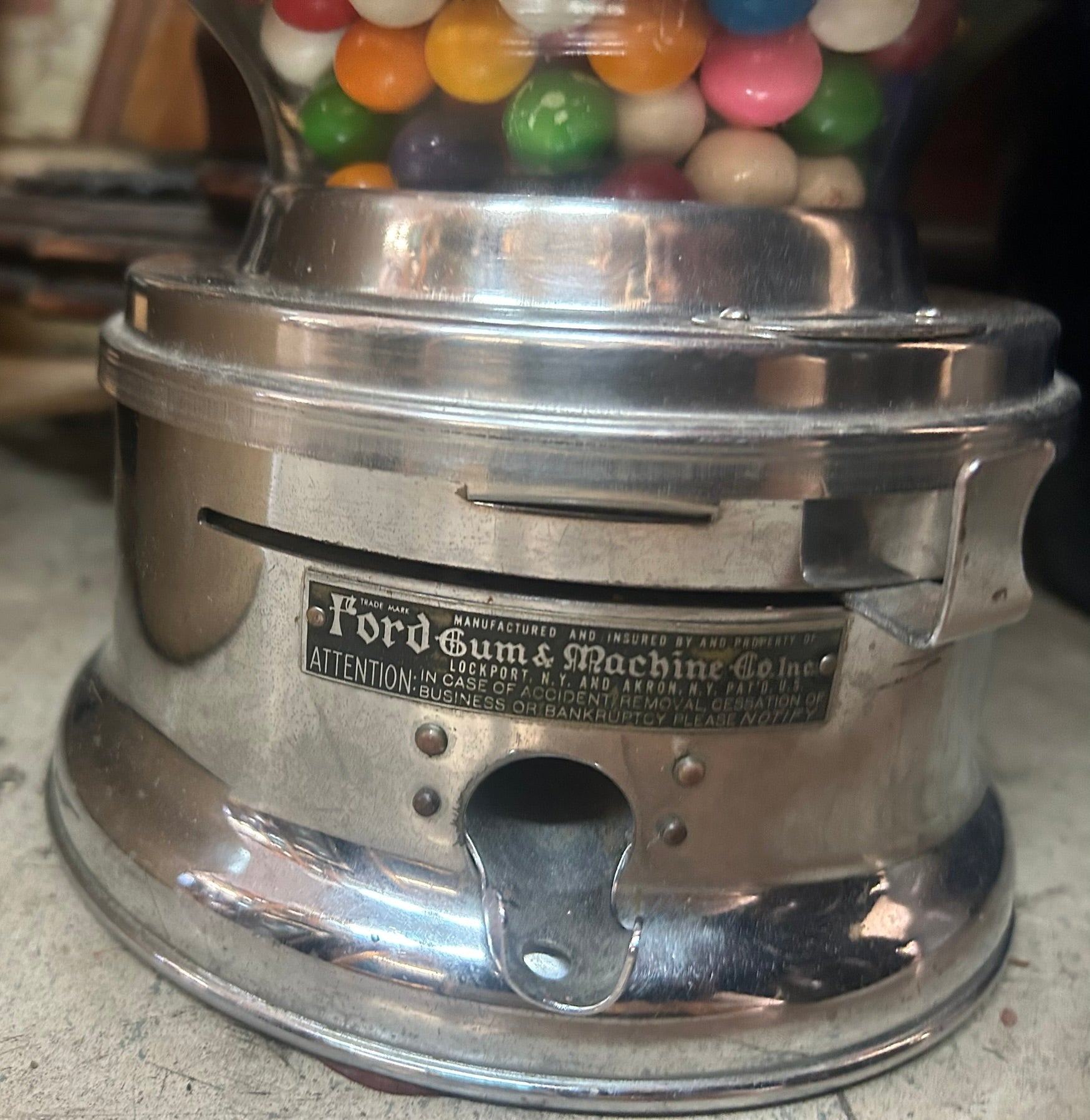 FORD CHROME COIN OP GUMBALL MACHINE IN GOOD CONDITION. CALL OR TEXT FOR MORE INFORMATION
