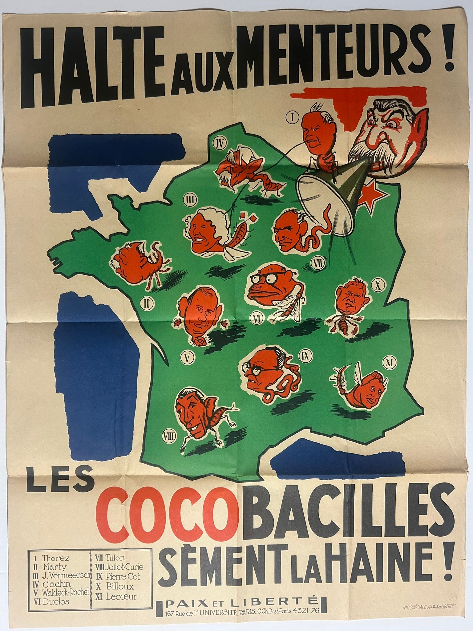 FRENCH ANTI COMMUNIST POSTER HALTE AUX MENTEURS FROM 1950'S