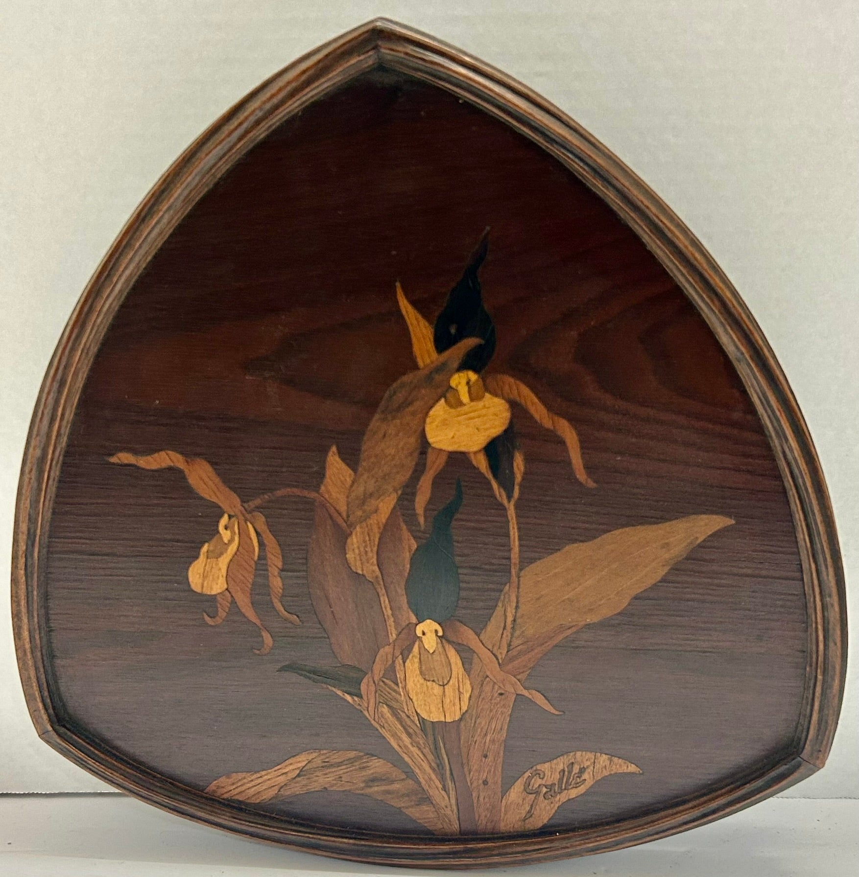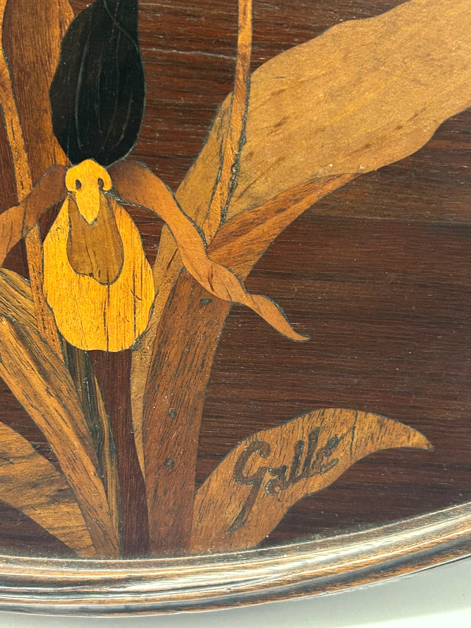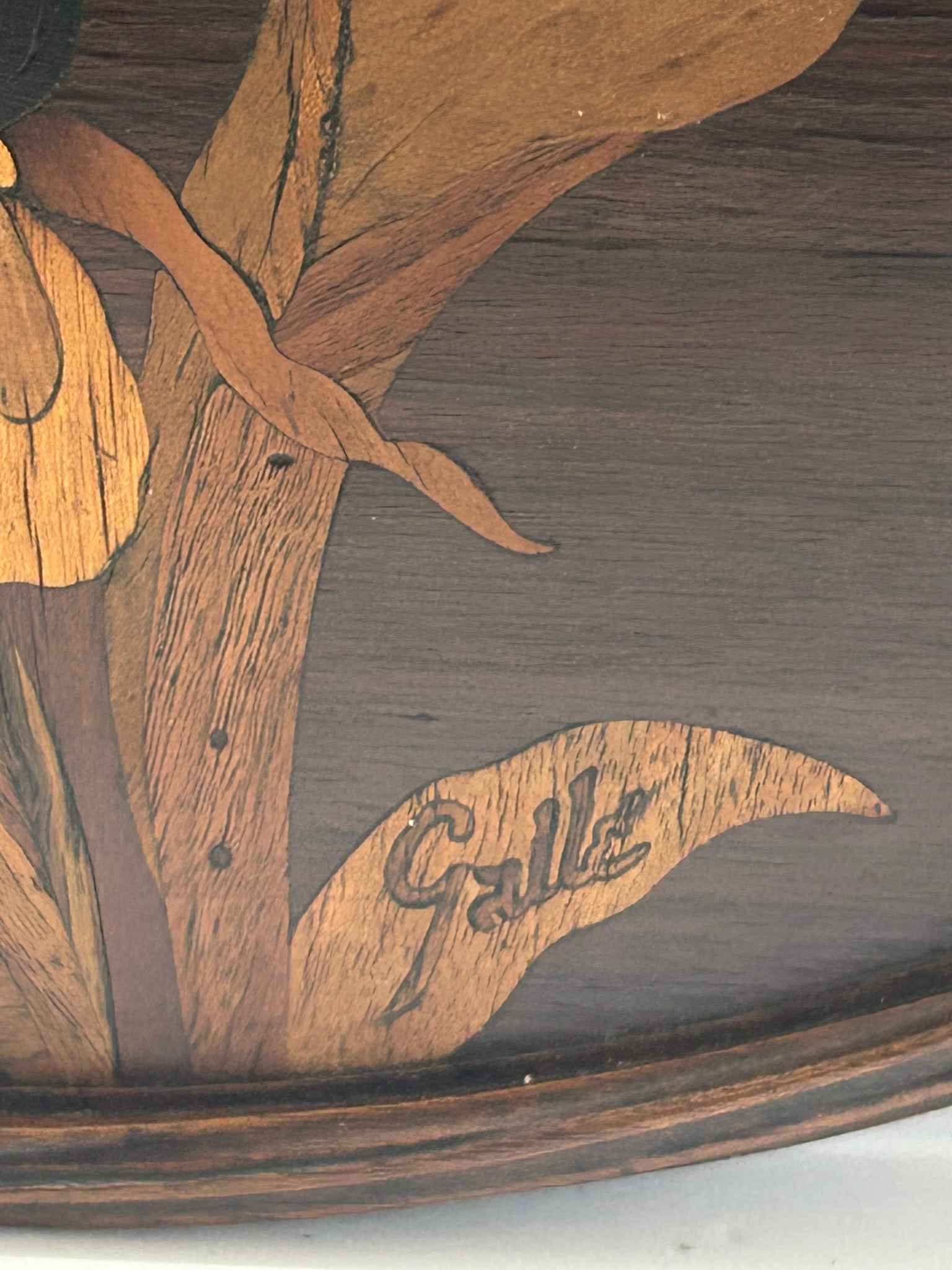 GALLE INLAID FRENCH WOODEN TRAY SIGNED