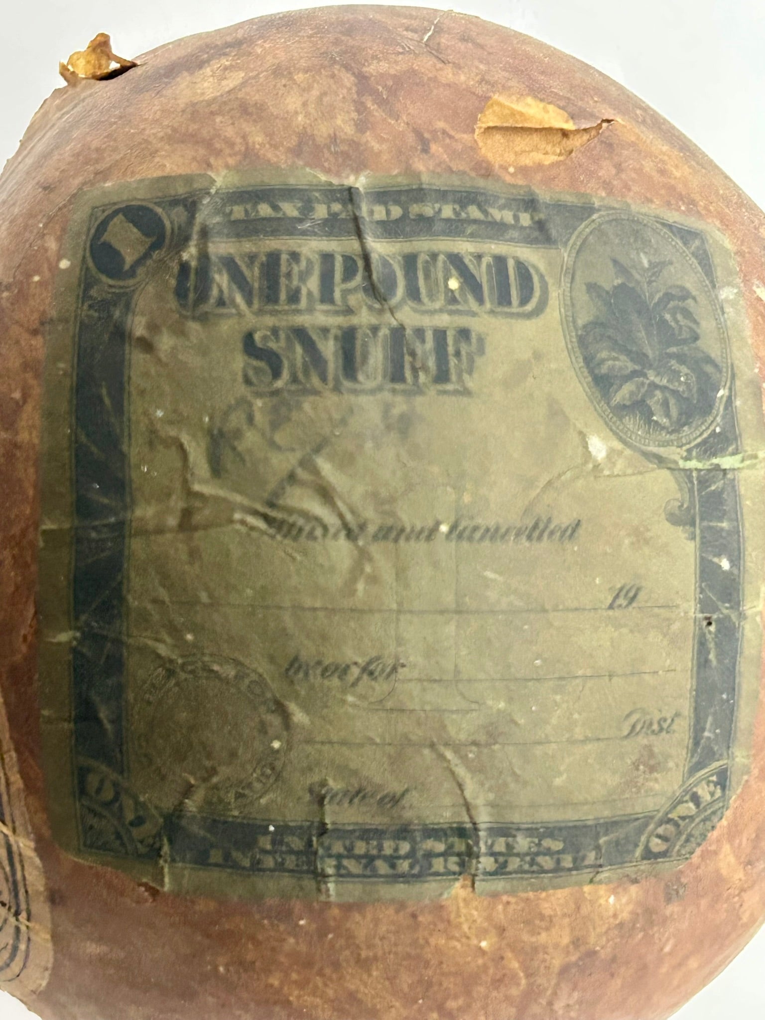 GARRETT SNUFF BALL OF TOBACCO 5" DIAMETER UNUSED ONE POUND. CALL OR TEXT FOR MORE INFORMATION
