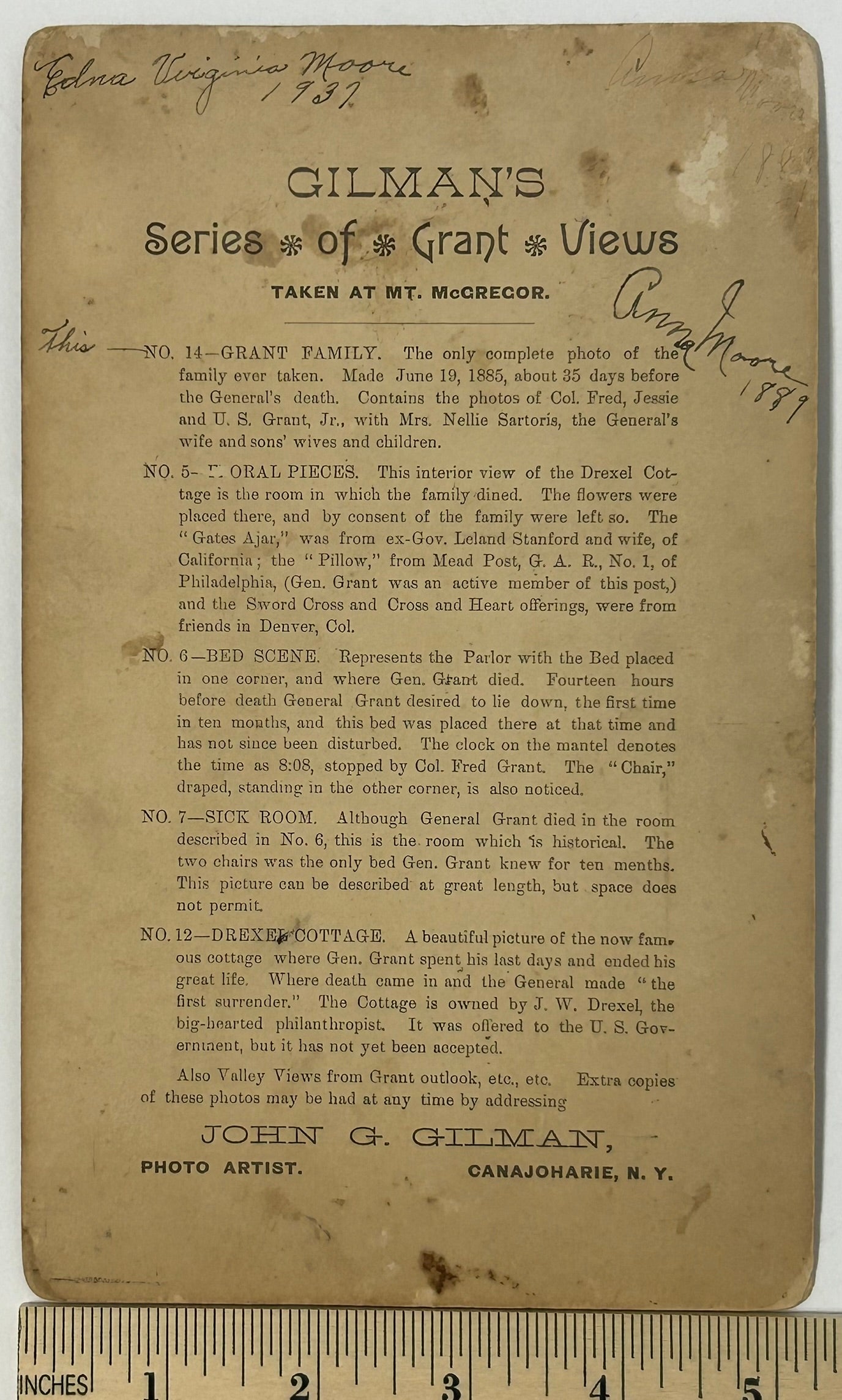 GENERAL U. S. GRANT WITH FAMILY ANTIQUE PHOTOGRAPH 5 1/4" X 8 1/2 " WITH FULL DESCRIPTION PRINTED ON BACK. CALL OR TEXT FOR MORE INFORMATION