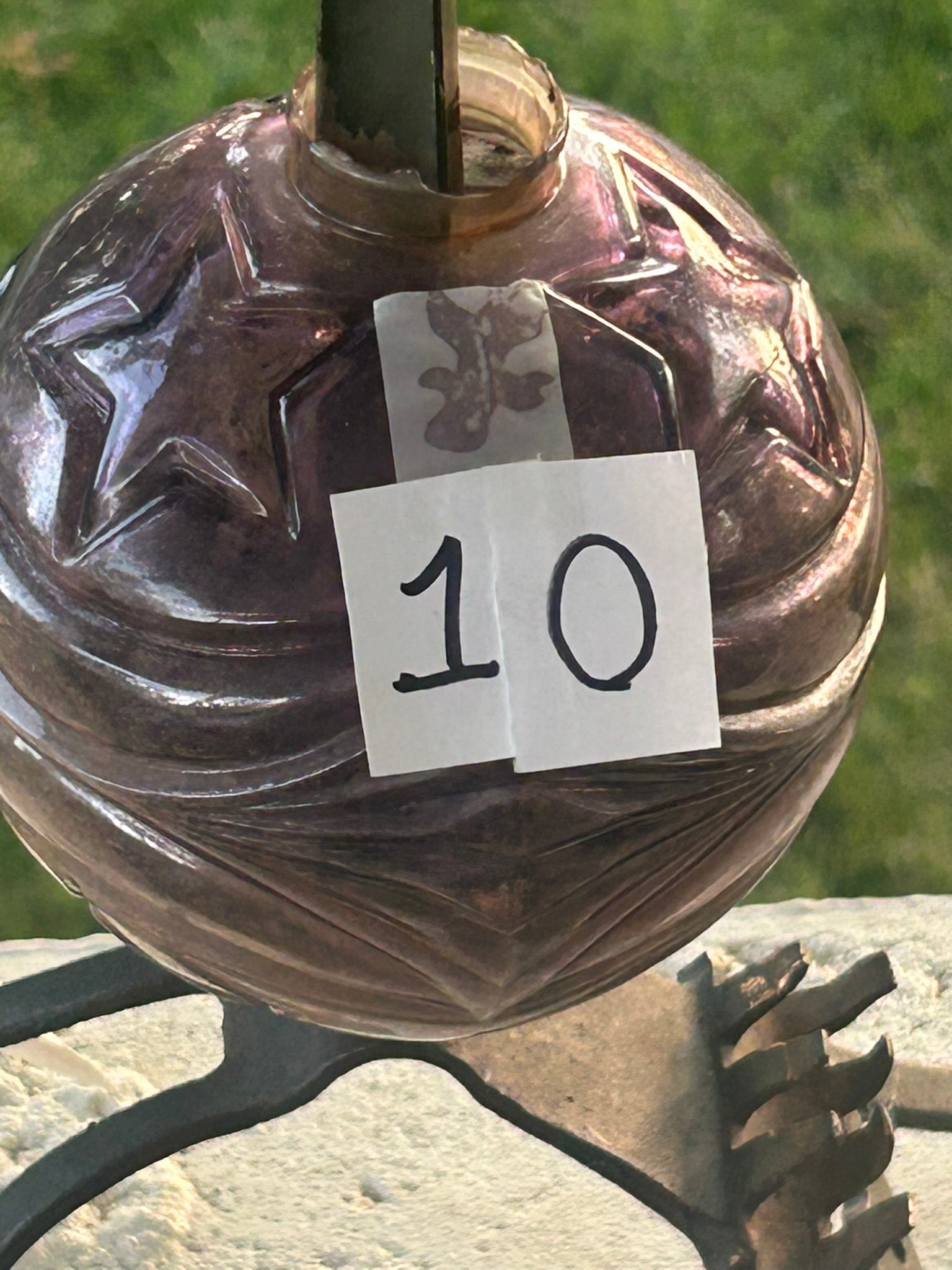 GLASS LIGHTNING ROD BALL OF MOON & STAR PURPLE MERCURY GLASS