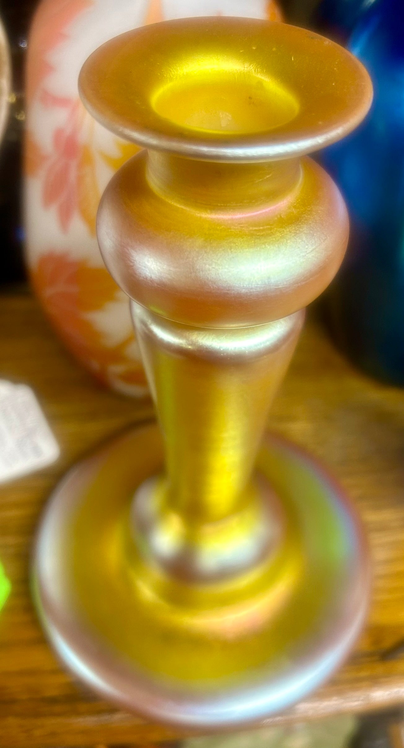 GOLD IRRIDESCENT GLASS ANTIQUE VASE OR CANDLESTICK