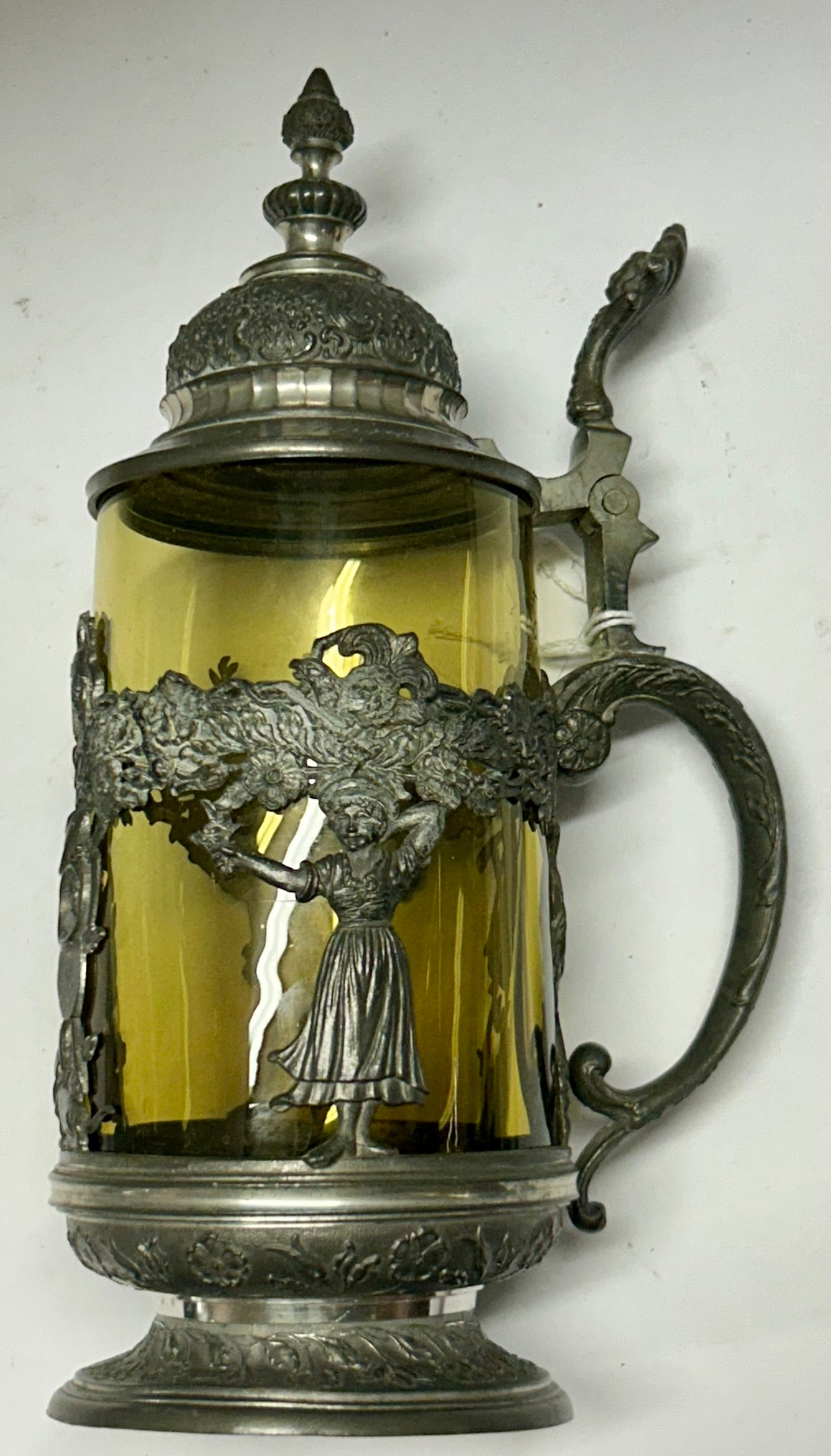GREEN GLASS 1800'S STEIN IN PEWTER MOUNT