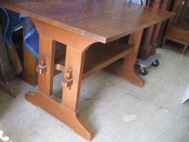 GUSTAV STICKLEY OAK TRESTLE TABLE