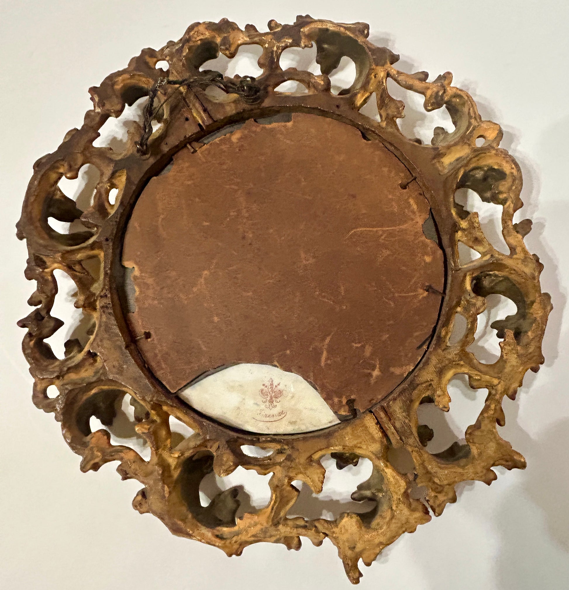 ANTIQUE HAND PAINTED PORCELAIN ITALIAN PLAQUE WITH WOMAN AND TWO CHILDREN VERY VERY WELL PAINTED AND VERY NICE FANCY GILT FRAME TOTAL 10" DIAMETER AND PLAQUE ONLY IS 6" DIAMETER. CALL OR TEXT TRIPLE A ANTIQUES FOR A SHIPPING COST BEFORE YOU PURCHASE THIS ITEM