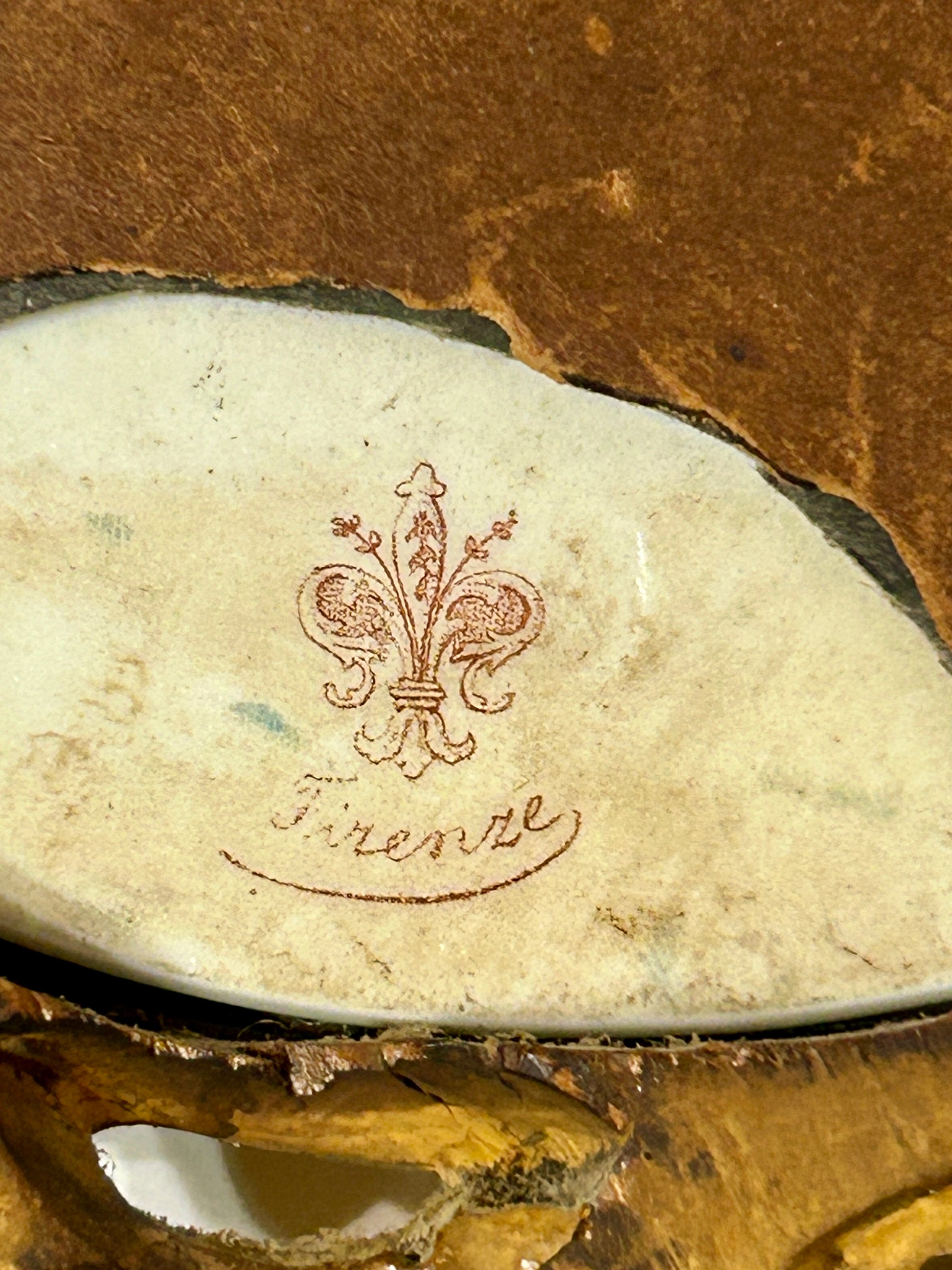 HAND PAINTED PORCELAIN ANTIQUE ITALIAN PORTRAIT PLAQUE IN FANCY FRAME
