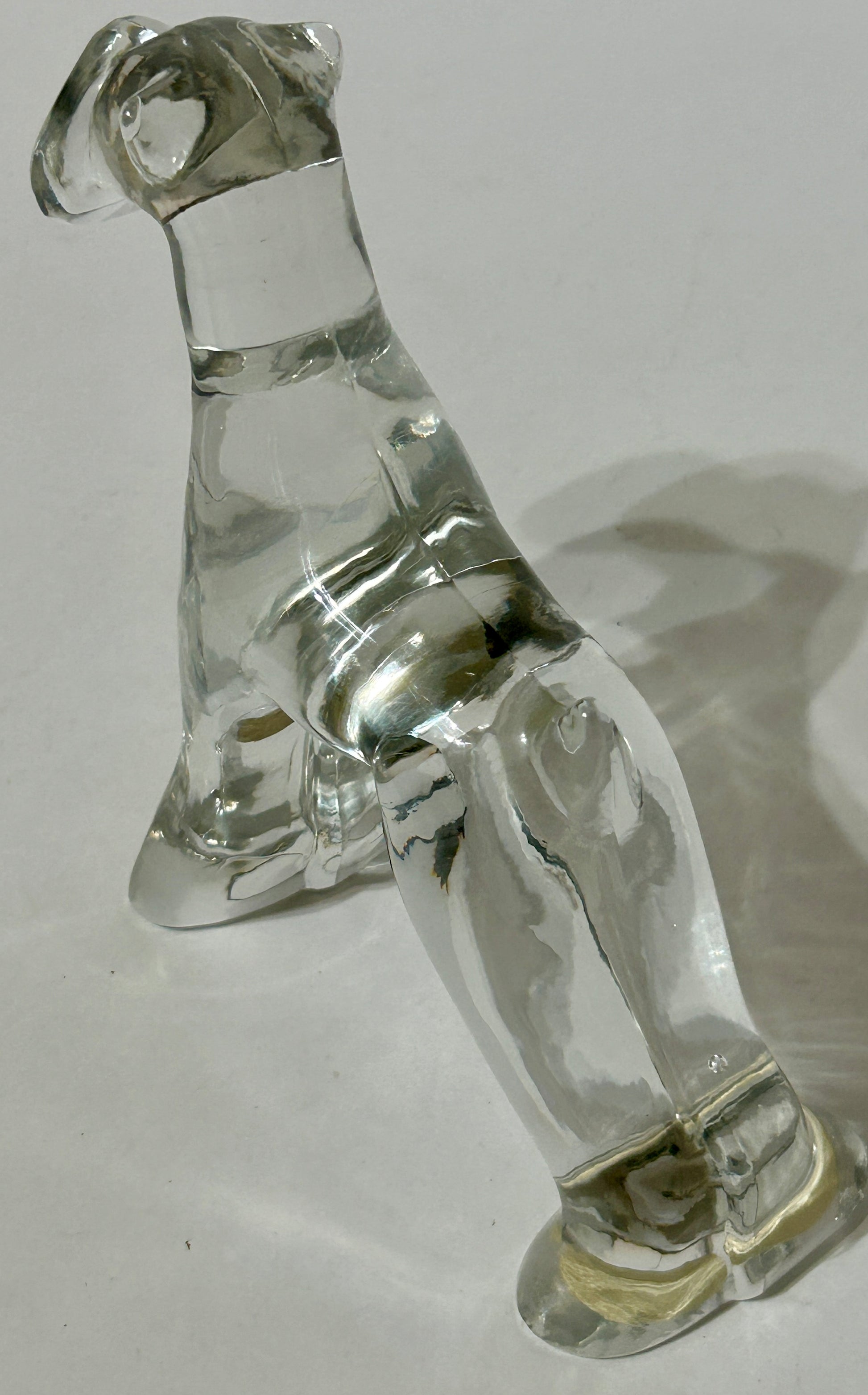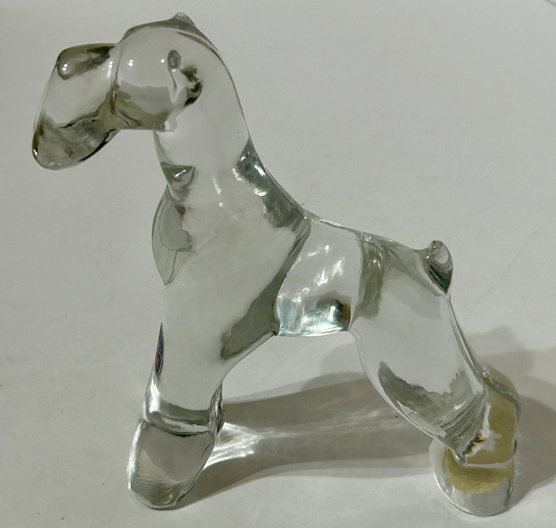 HEISEY GLASS AIREDALE TERRIER DOG WITH ORIGINAL MAKERS LABEL 6" TALL X 6 1/2" WIDE. SHIPPING IS EXTRA CHARGE SO CALL OR TEXT TO FIND OUT WHAT WE WILL HAVE TO PAY TO SHIP THIS ITEM TO YOUR ADDRESS