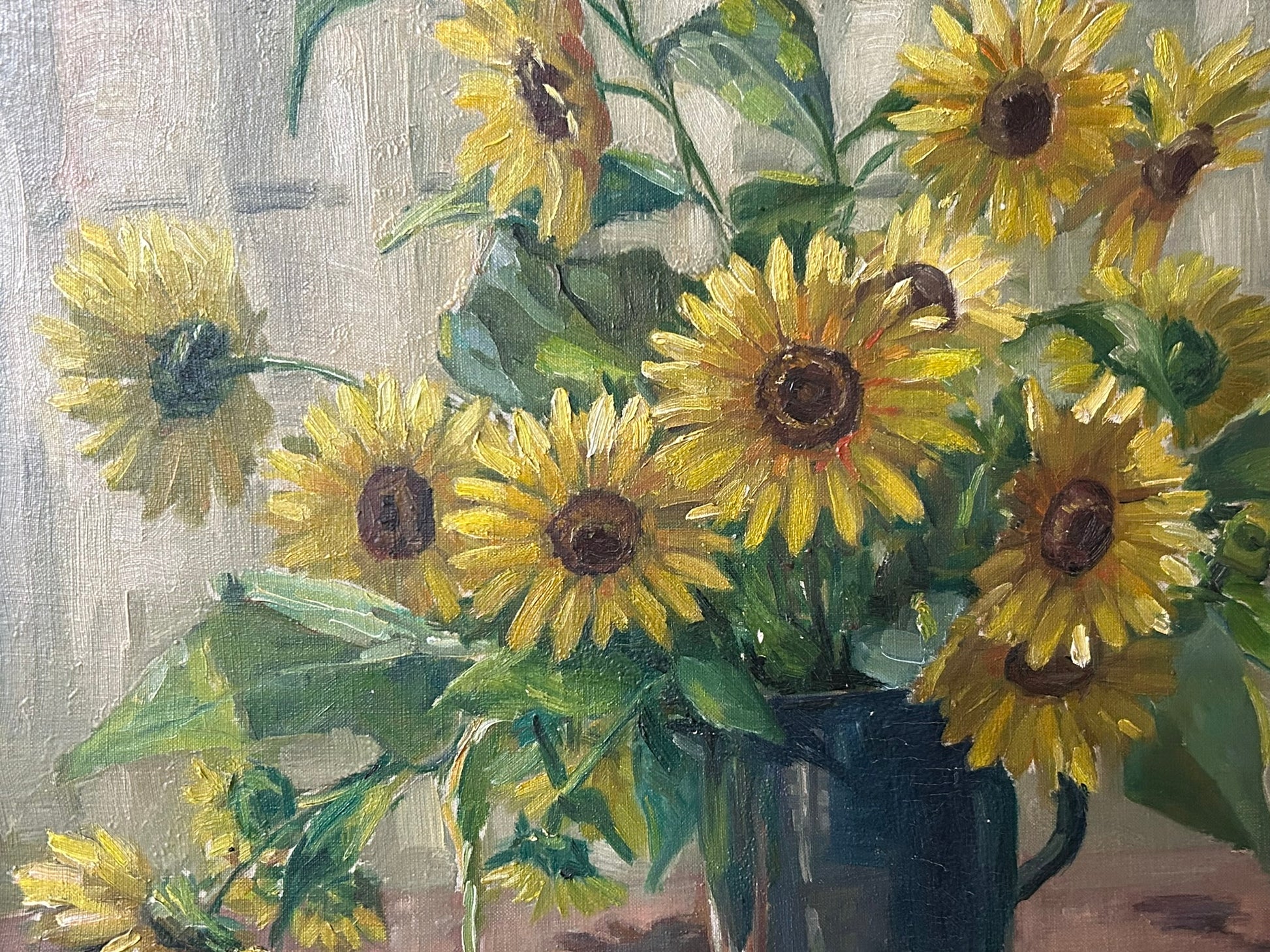 HELEN AUGUSTA ISERMAN FRANCIS HODGE 1870-1958 KANSAS AND CALIFORNIA ARTIST SUNFLOWERS PAINTING 20" X 24". CALL OR TEXT FOR MORE INFORMATION