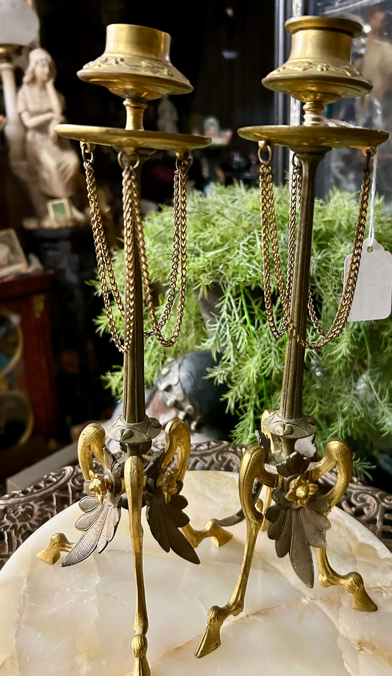 HENRI PICARD PAIR OF SIGNED 12" TALL BRONZE CANDLESTICKS. CALL OR TEXT FOR MORE INFORMATION