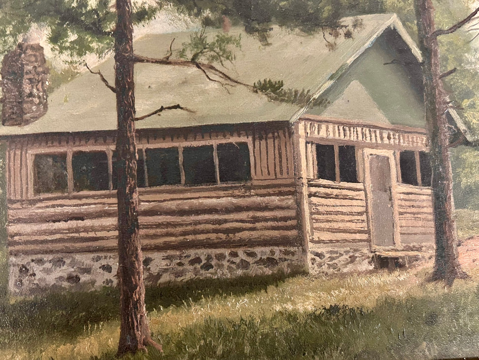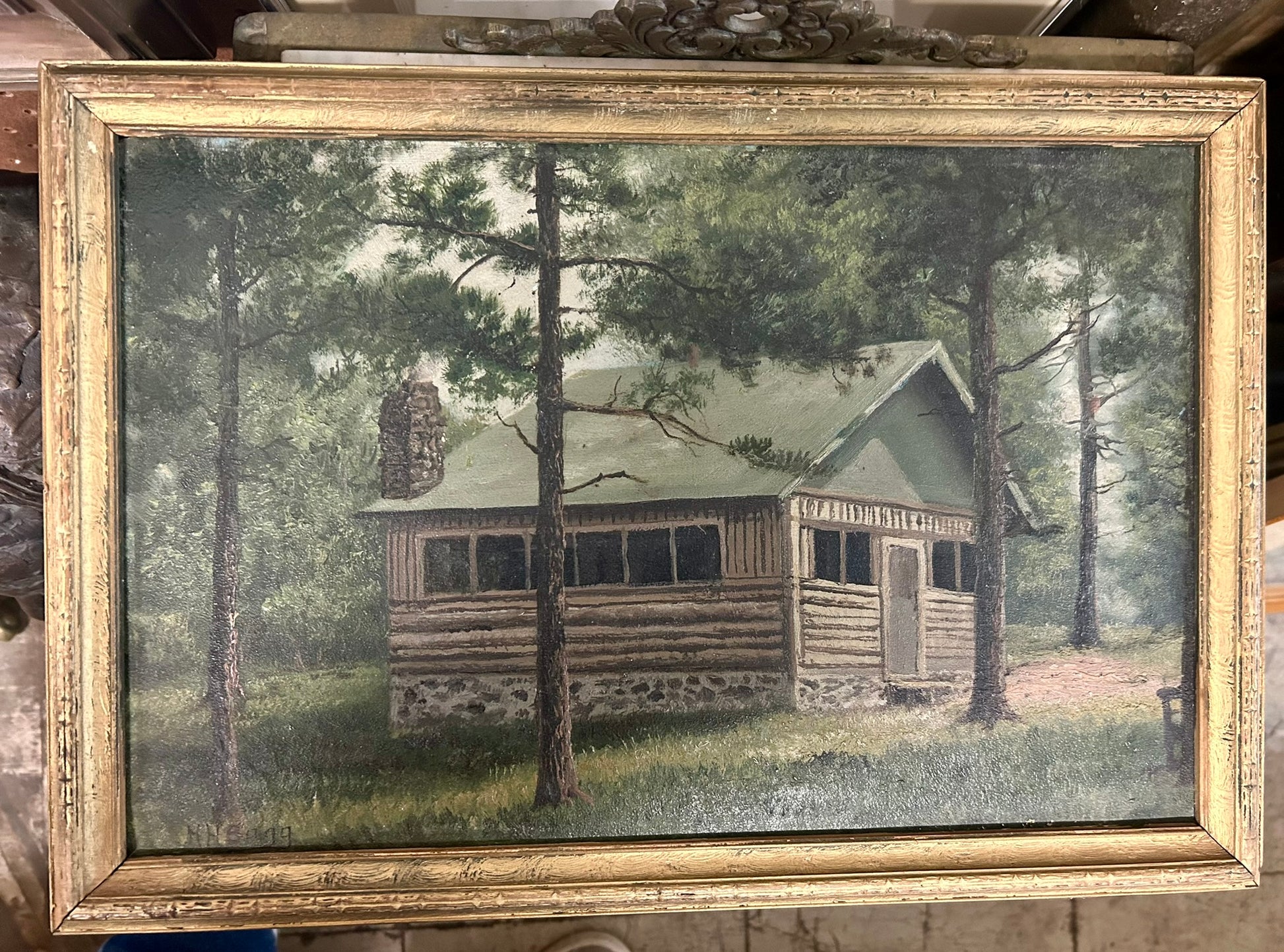 HENRY HOWARD BAGG NEBRASKA AND CALIFORNIA ARTIST 1852-1928 CABIN PAINTING 13" X 18" WITH FRAME. CALL, TEXT, OR E-MAIL FOR MORE INFORMATION