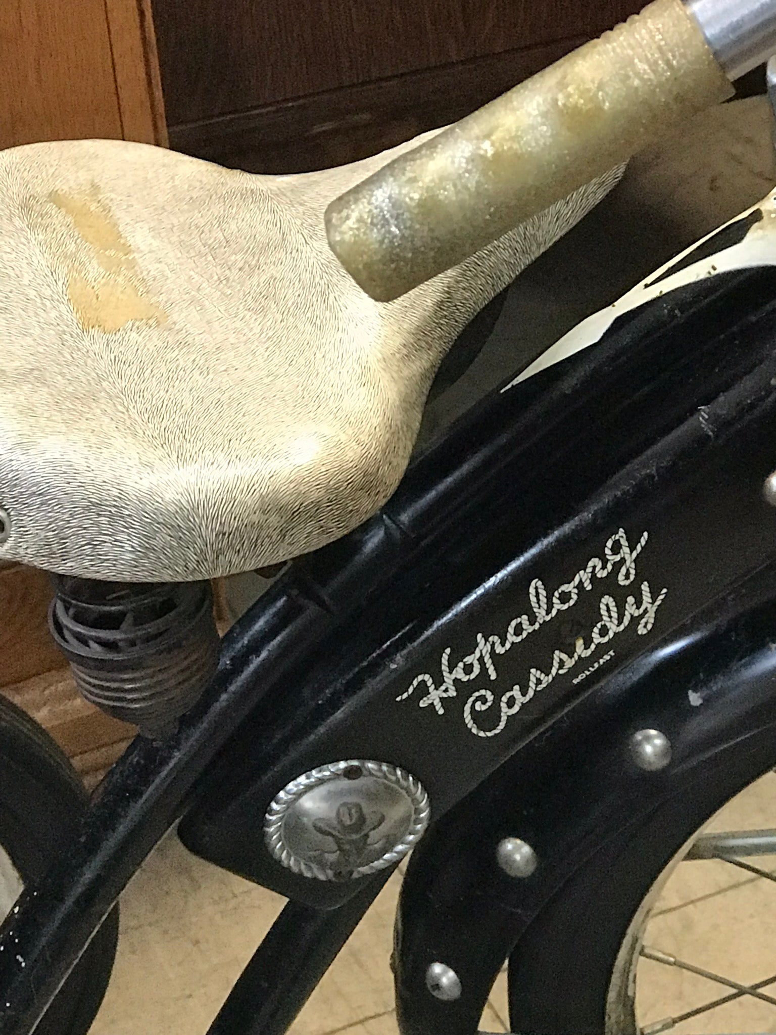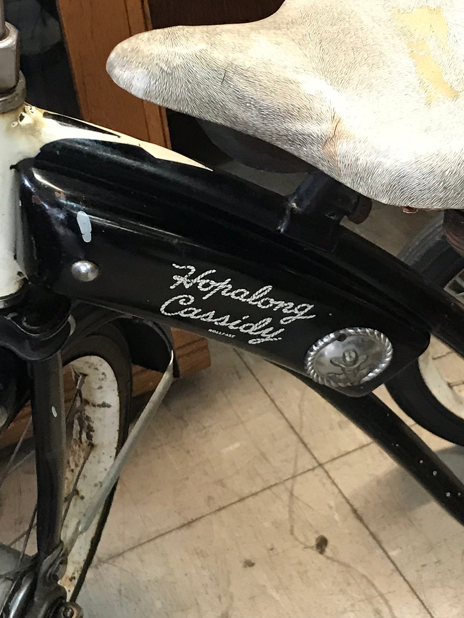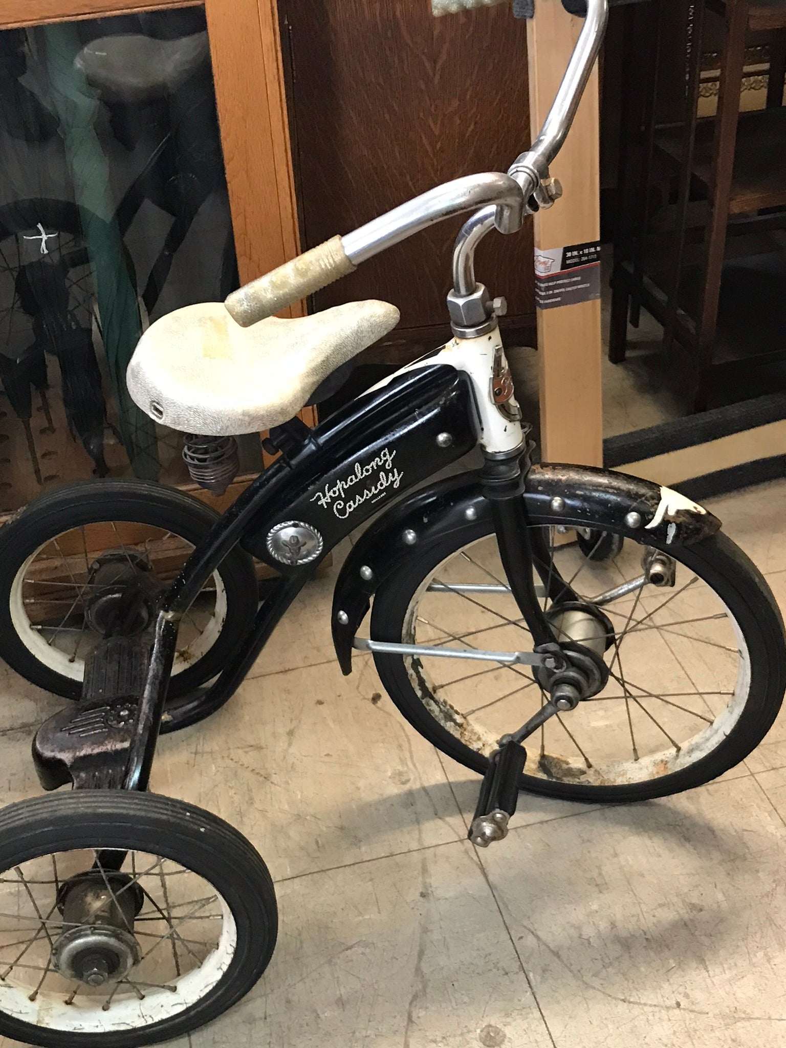 HOPALONG CASSIDY 1950'S TRICYCLE IN ORIGINAL CONDITION FOR SALE. CALL, TEXT, OR E-MAIL FOR MORE INFORMATION
