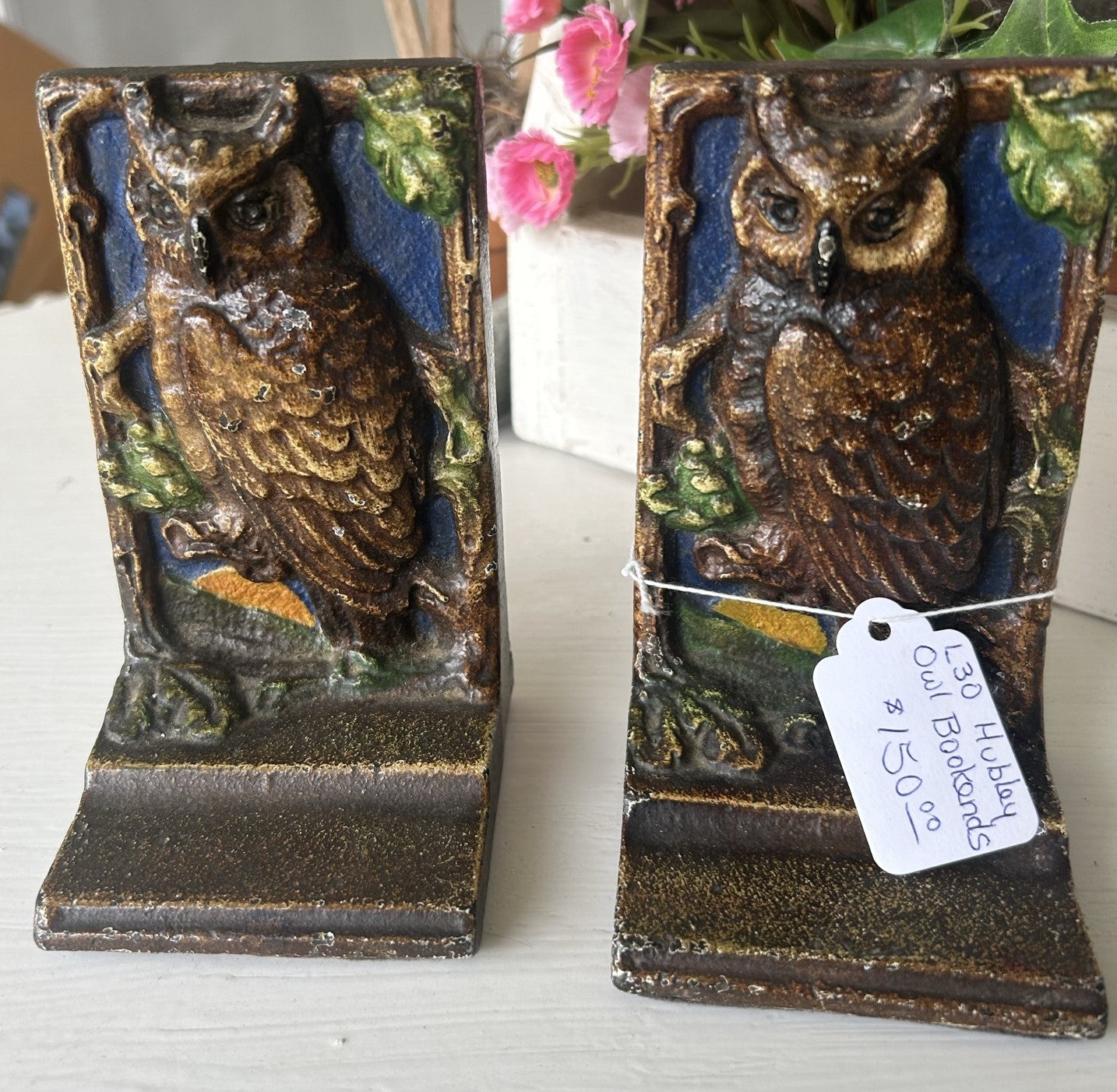 HUBLEY OWL CAST IRON PAIR OF BOOKENDS. PLEASE CALL, TEXT, OR E-MAIL FOR MORE INFORMATION