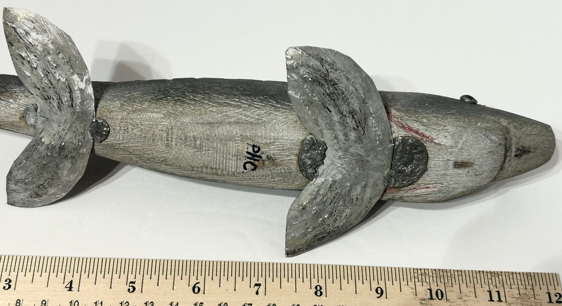 #6 ICE FISHING WOOD DECOY BY P. H. CHRISTIANSON 12" LONG. CALL OR TEXT FOR MORE INFORMATION