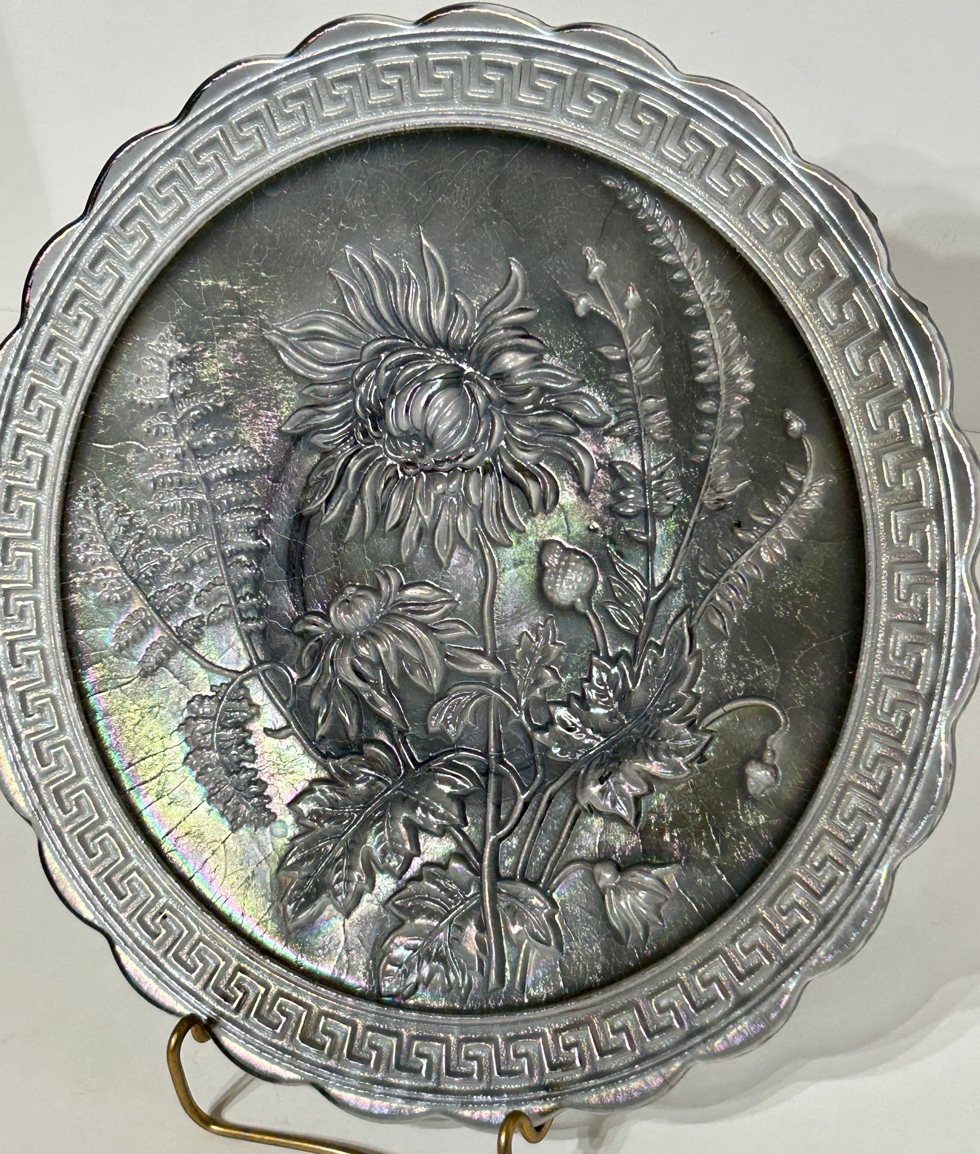 IMPERIAL CARNIVAL GLASS OLD SMOKY CHRYSANTHEMUM CHOP PLATE