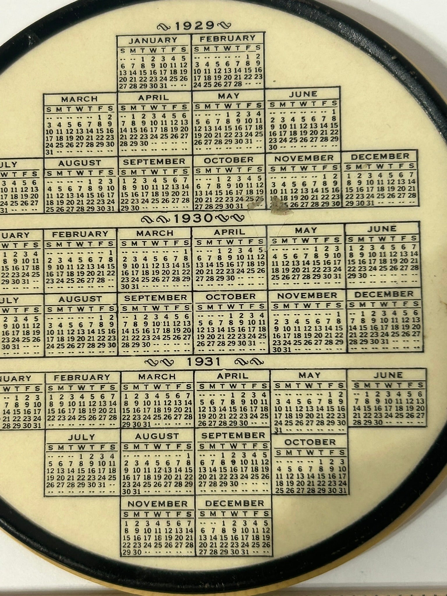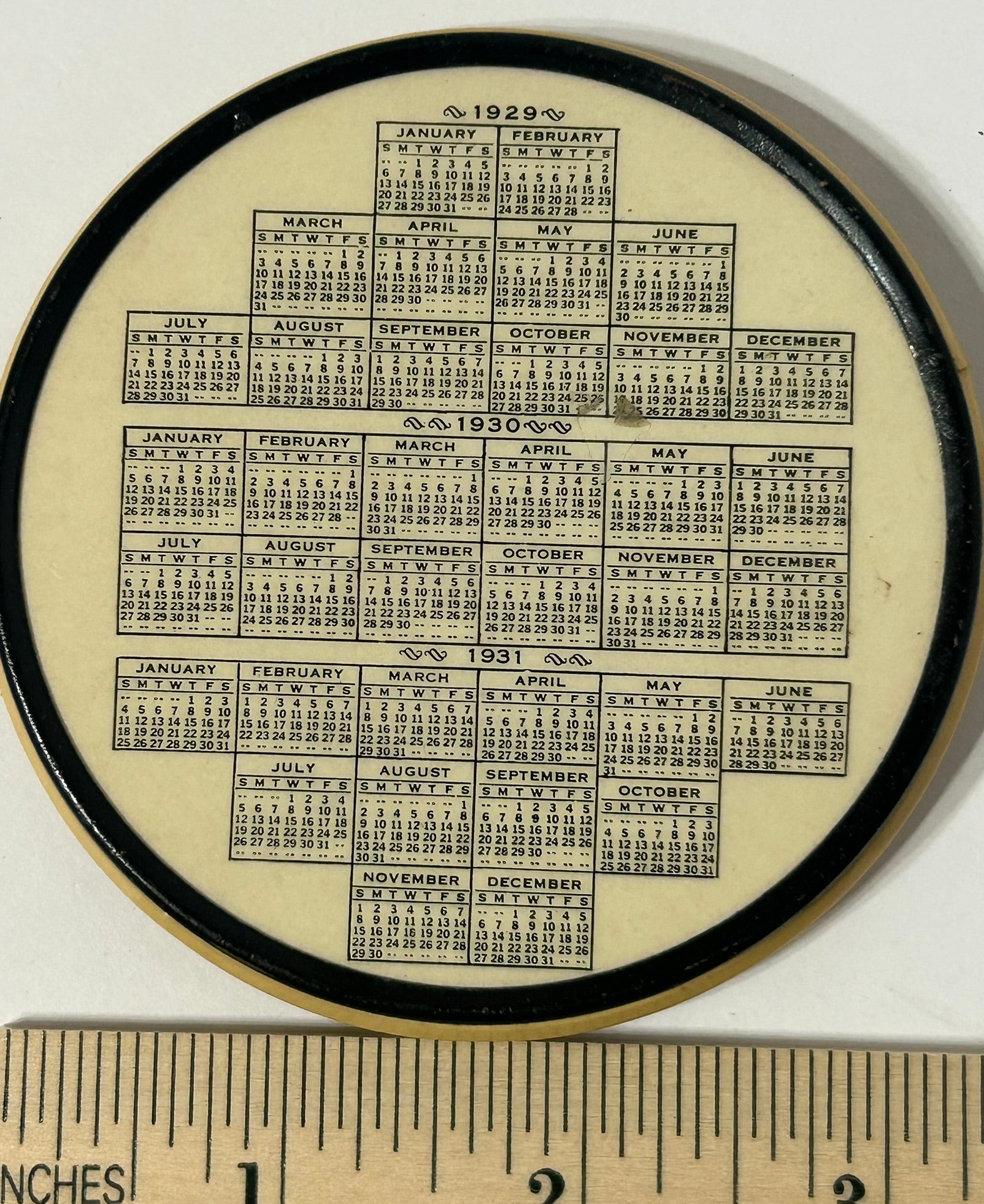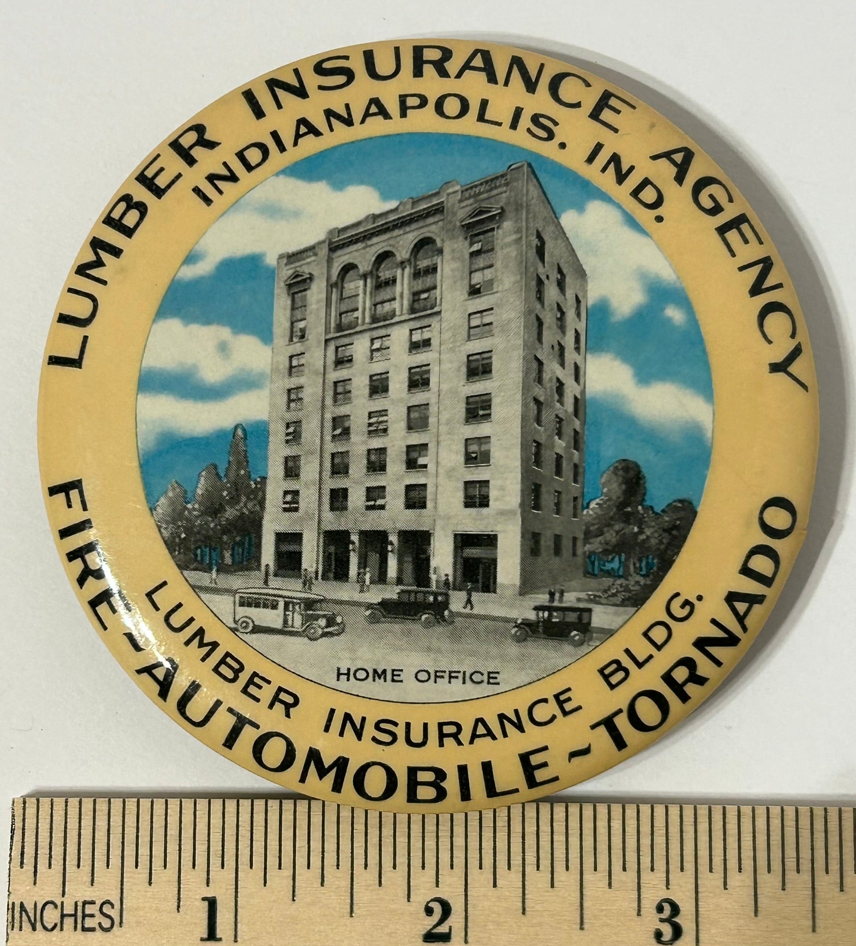 LUMBER INSURANCE AGENCY INDIANAPOLIS INDIANA 1931 ADVERTISING COMBO PAPERWEIGHT CALENDAR 3 1/2" DIAMETER. CALL OR TEXT FOR MORE INFORMATION
