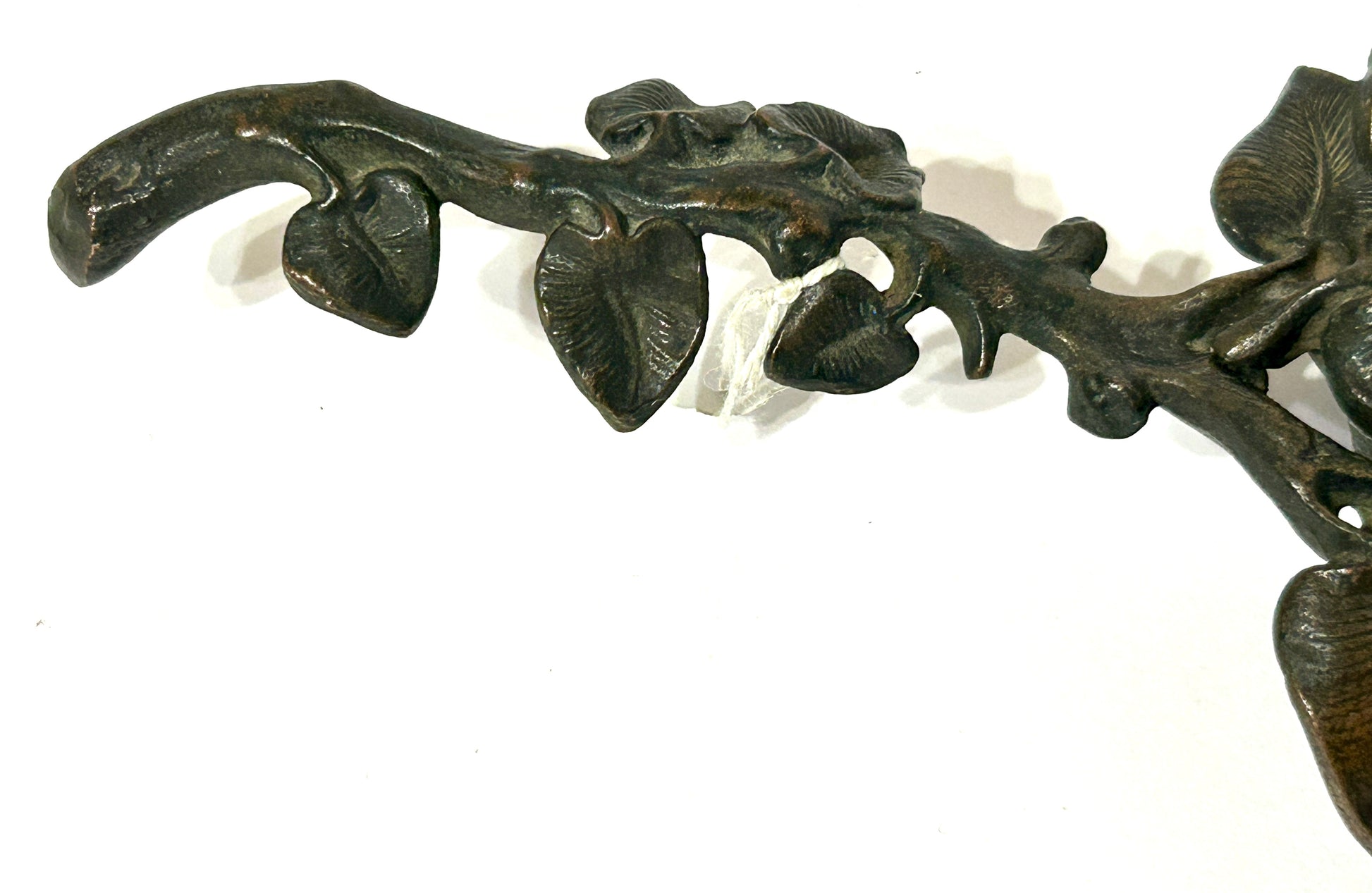 ANTIQUE FIGURAL PEAR DESIGN IRON WITH BRONZE PLATING CANDLE AND MATCH HOLDER 9 1/2" LONG X 4 1/2" WIDE SHIPPING IS EXTRA SO CALL OR TEXT TO FIND OUT HOW MUCH SHIPPING WILL COST