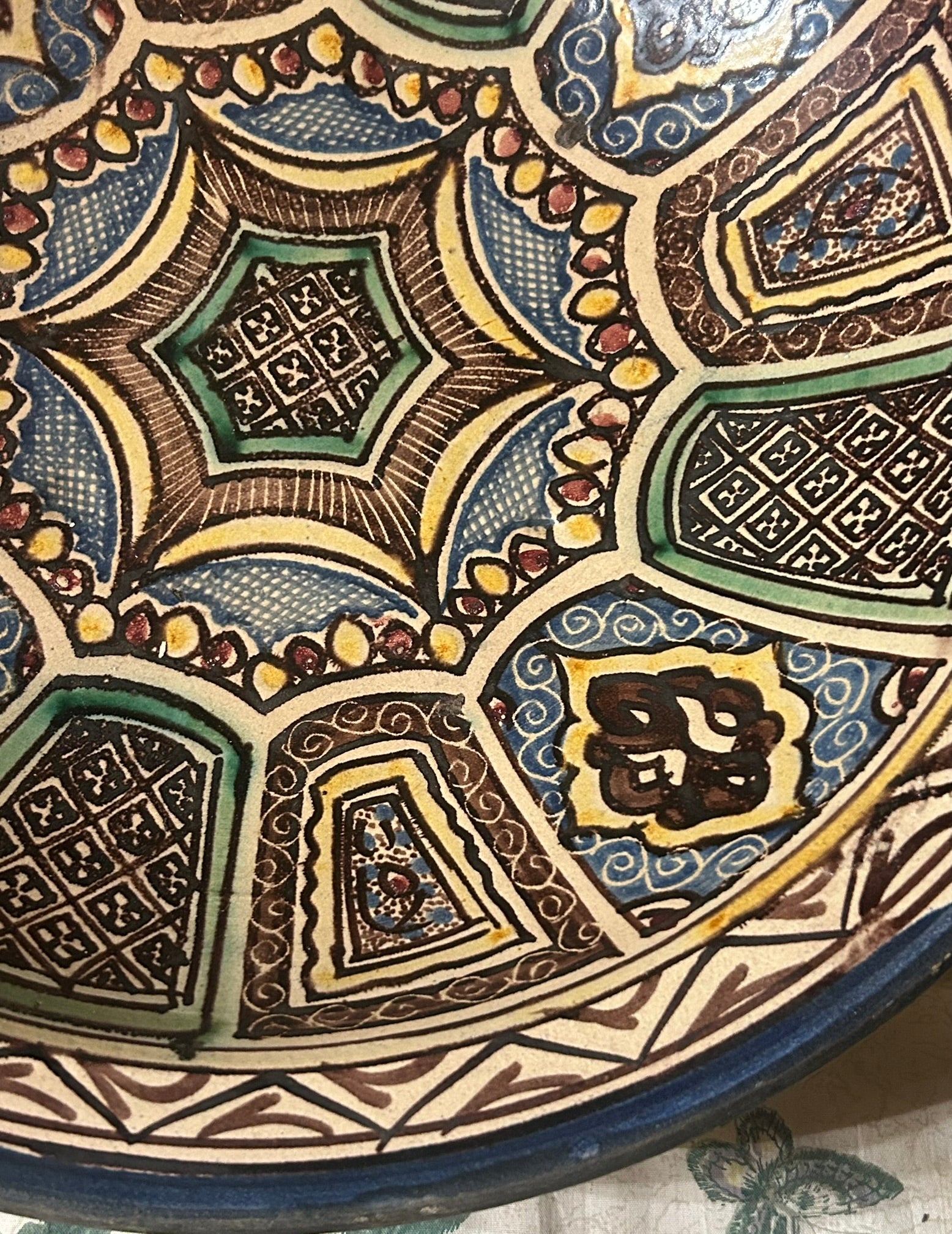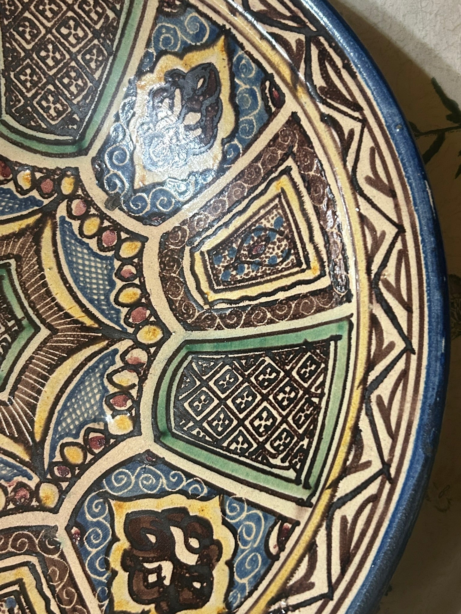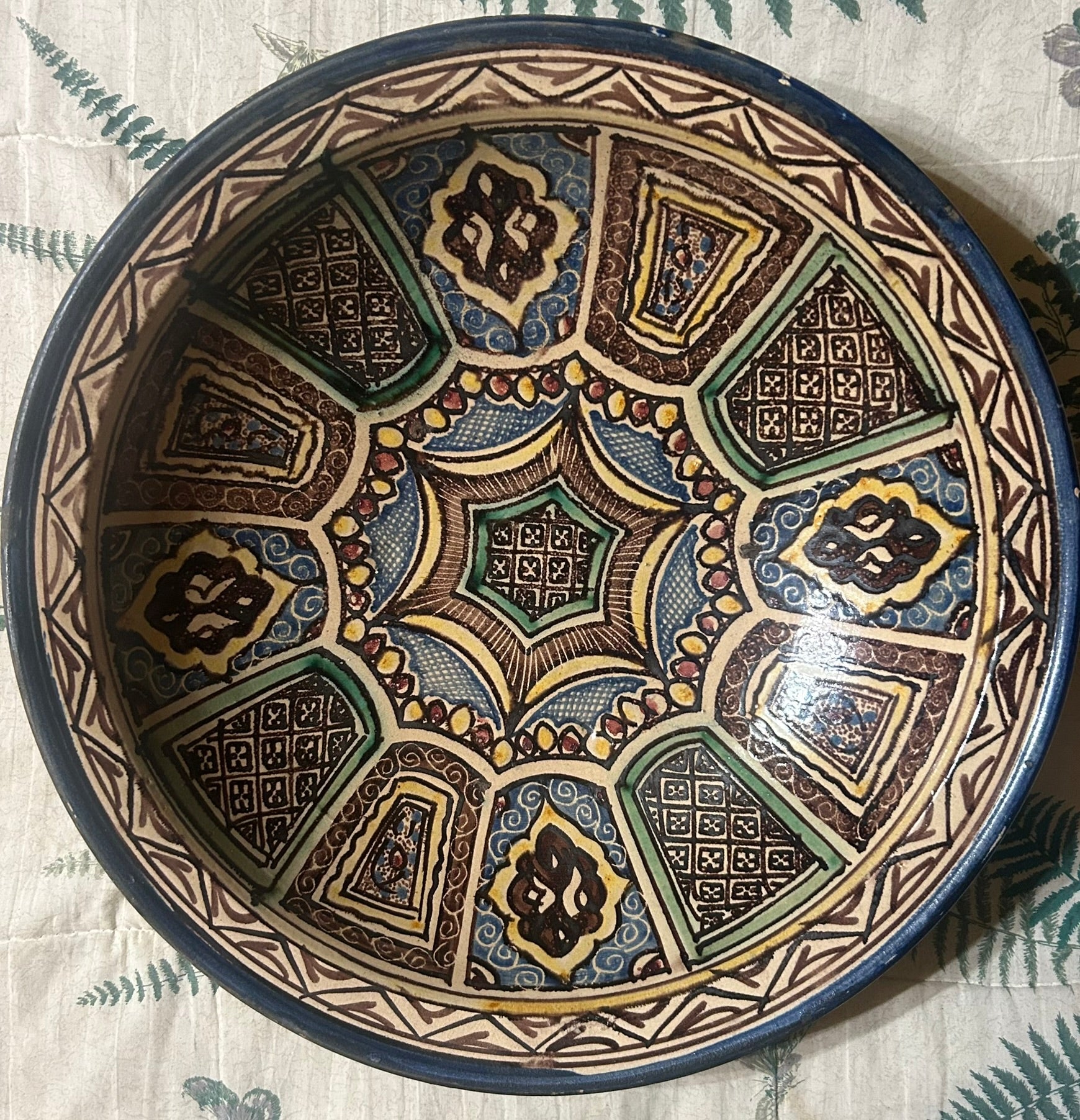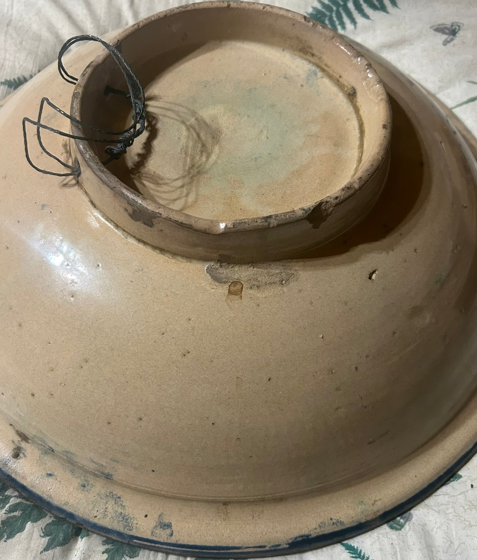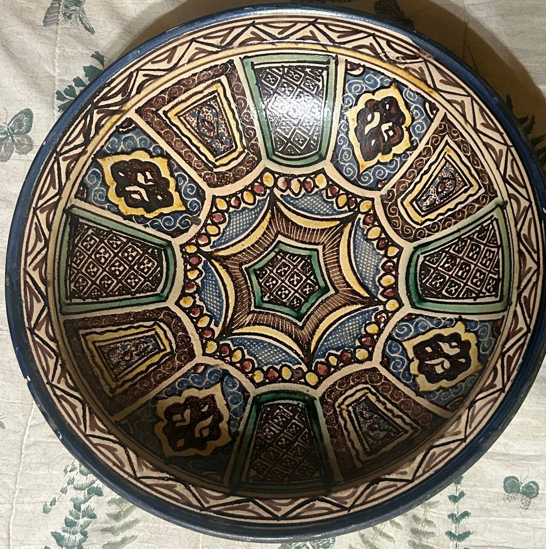 ISLAMIC DECORATED EARTHENWARE ANTIQUE LARGE BOWL 16 1/2" DIAMETER, CALL OR TEXT FOR MORE INFORMATION
