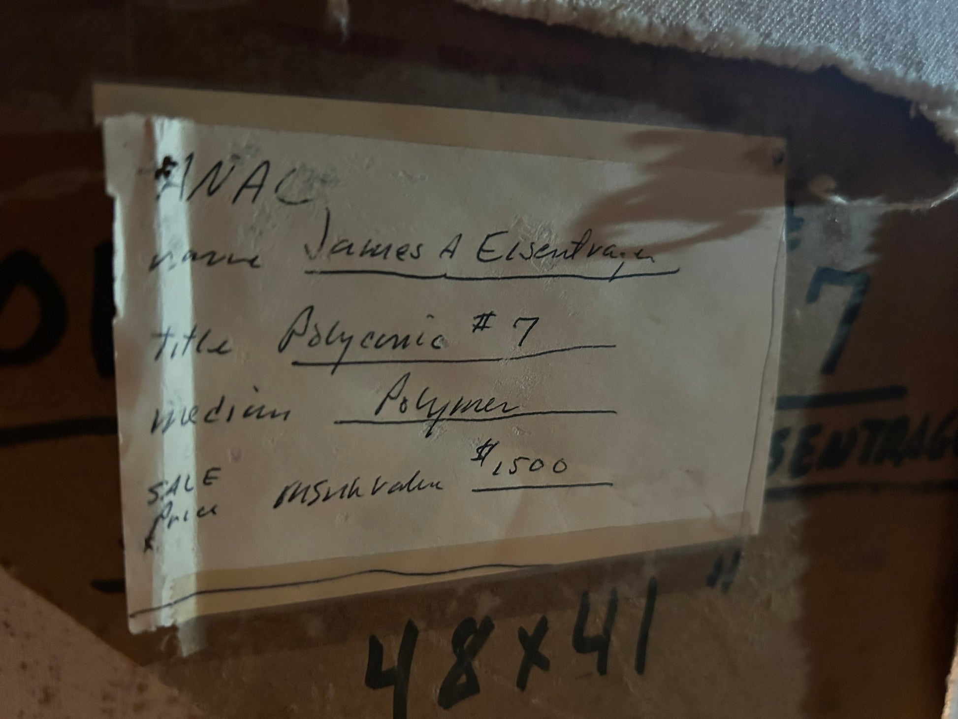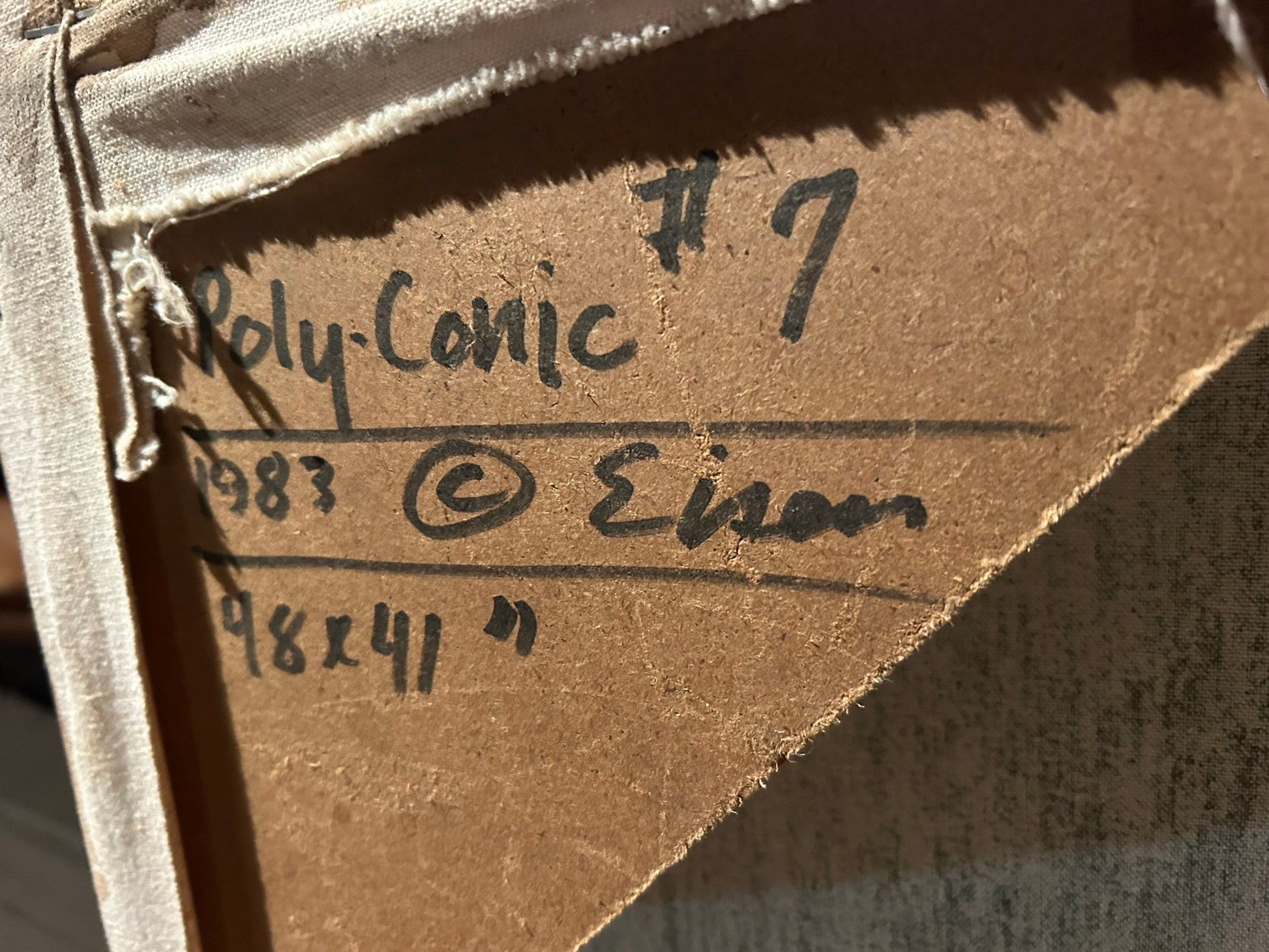 JAMES A. EISENTRAGER 1929-2002 LARGE ABSTRACT PAINTING 42" X 49" CALLED "POLYCONIC # 7". CALL, TEXT, OR E-MAIL FOR MORE INFORMATION