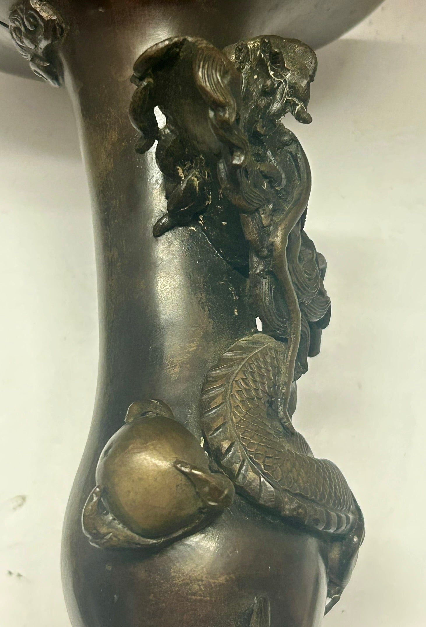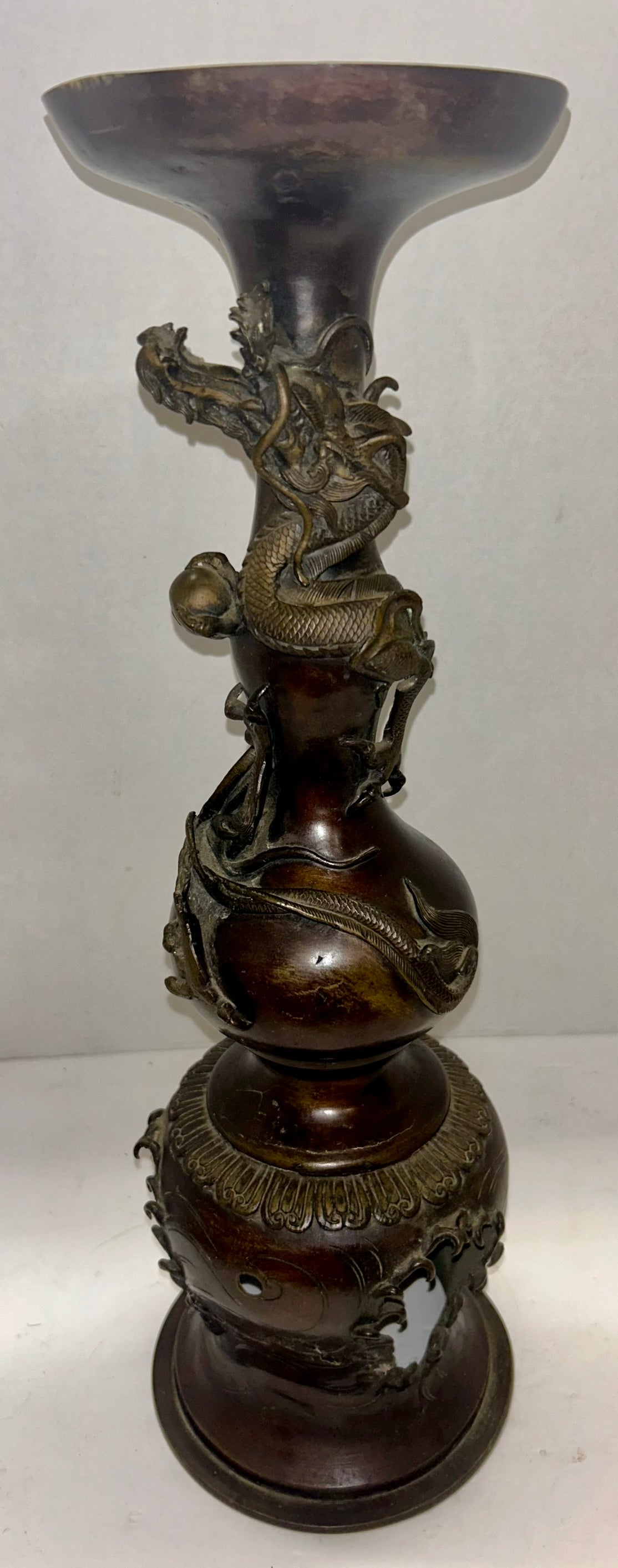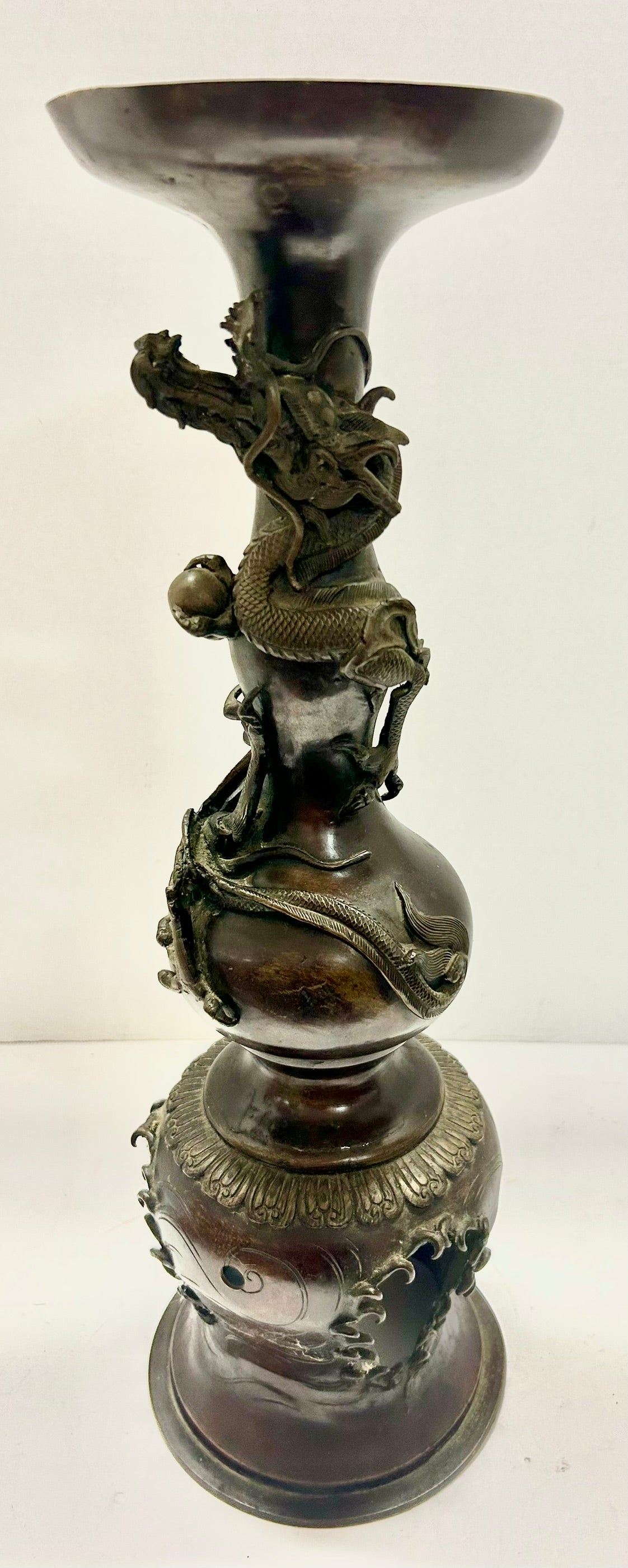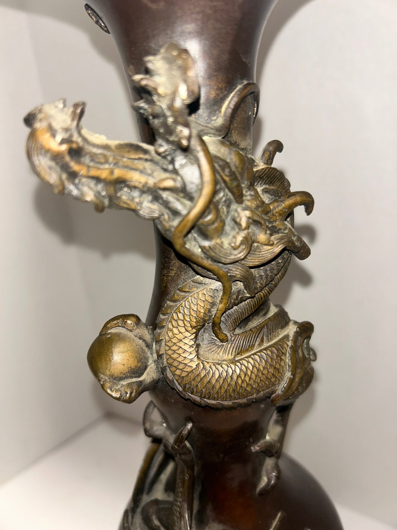 ANTIQUE JAPANESE BRONZE BASE WITH FIGURAL DRAGON 19" TALL. CALL OR TEXT FOR MORE INFORMATION