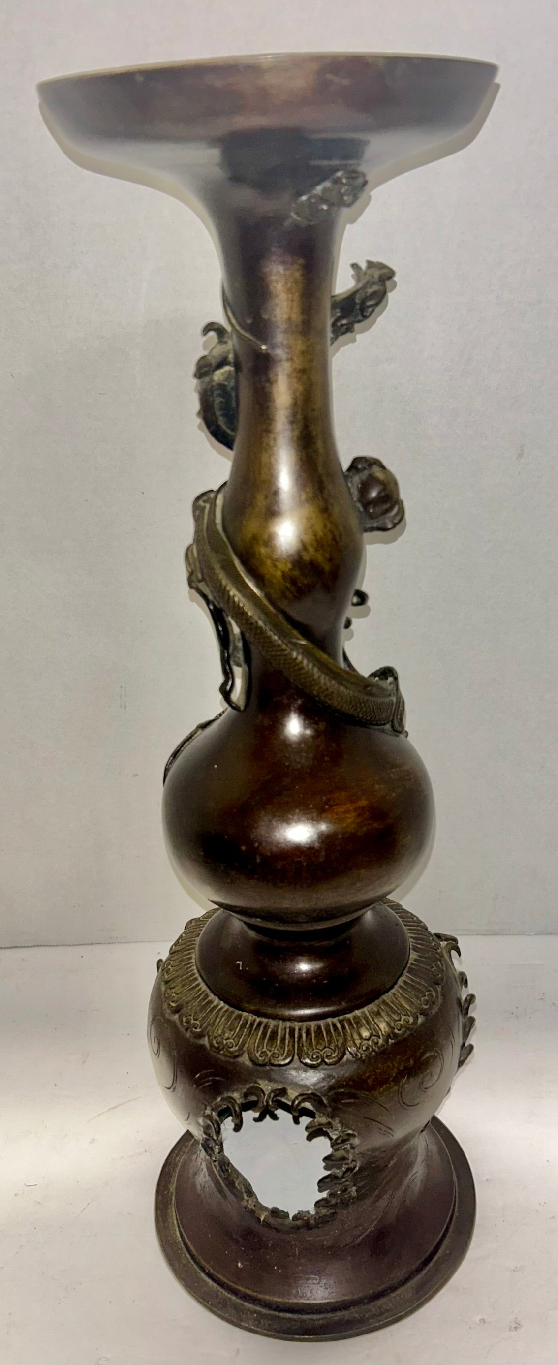 JAPANESE ANTIQUE BRONZE BASE WITH DRAGON DESIGN