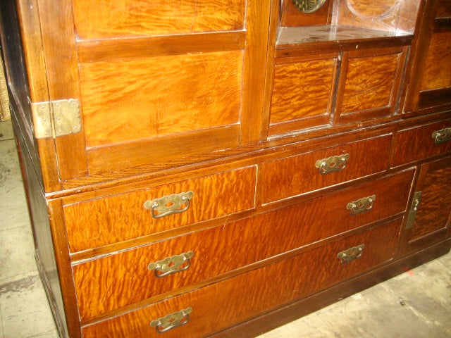 JAPANESE LARGE ANTIQUE CHEST WITH BEAUTIFUL WOOD 76" TALL X 57" WIDE X 23" DEEP. CALL OR TEXT FOR MORE INFORMATION