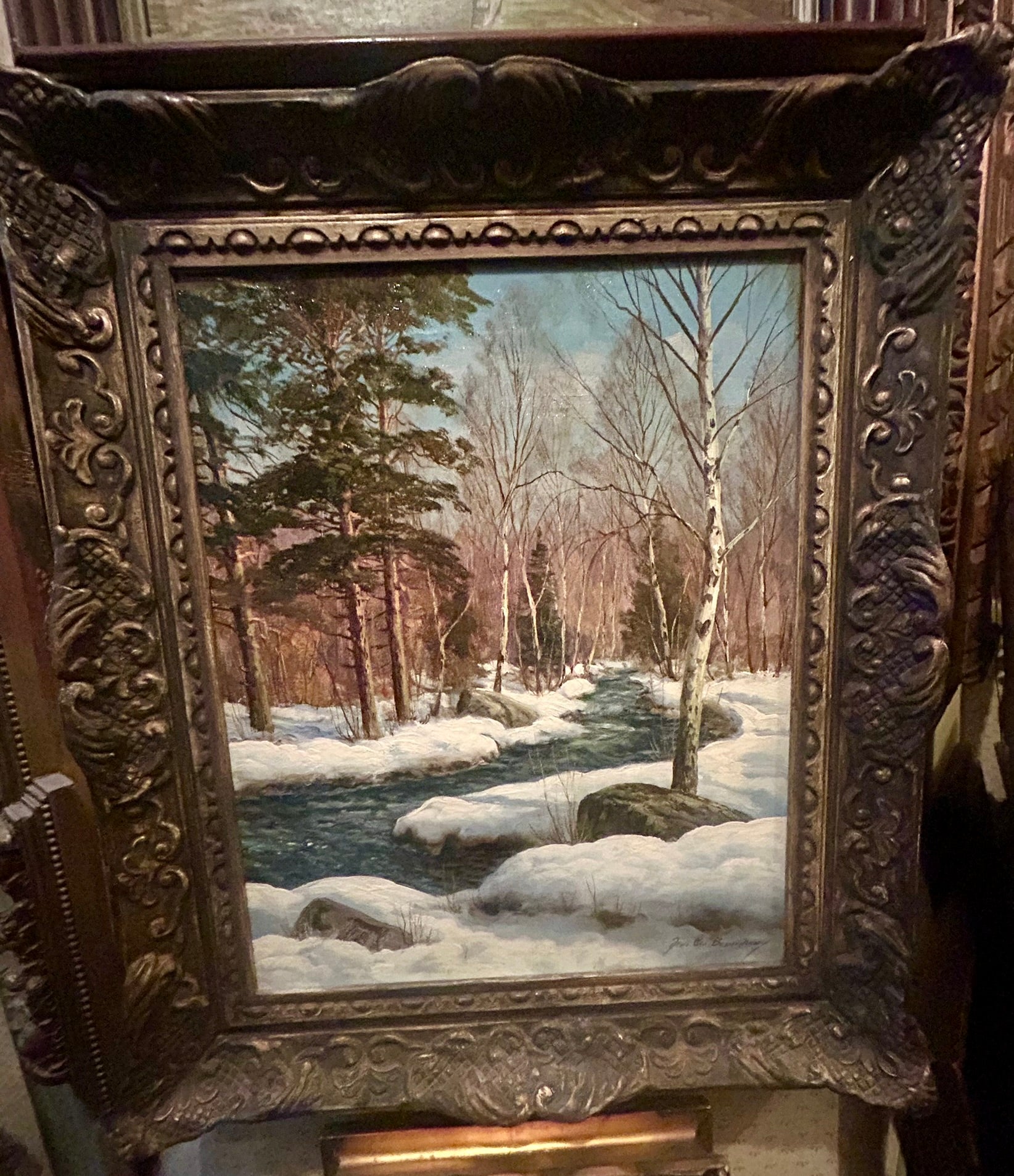 JENS CHRISTIAN BENNEDSEN 1893-1967 WINTER SCENE PAINTING 20" X 16". CALL OR TEXT FOR MORE INFORMATION