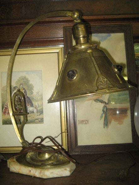 JEWELED BRASS ANTIQUE DESK LAMP. CALL OR TEXT FOR MORE INFORMATION