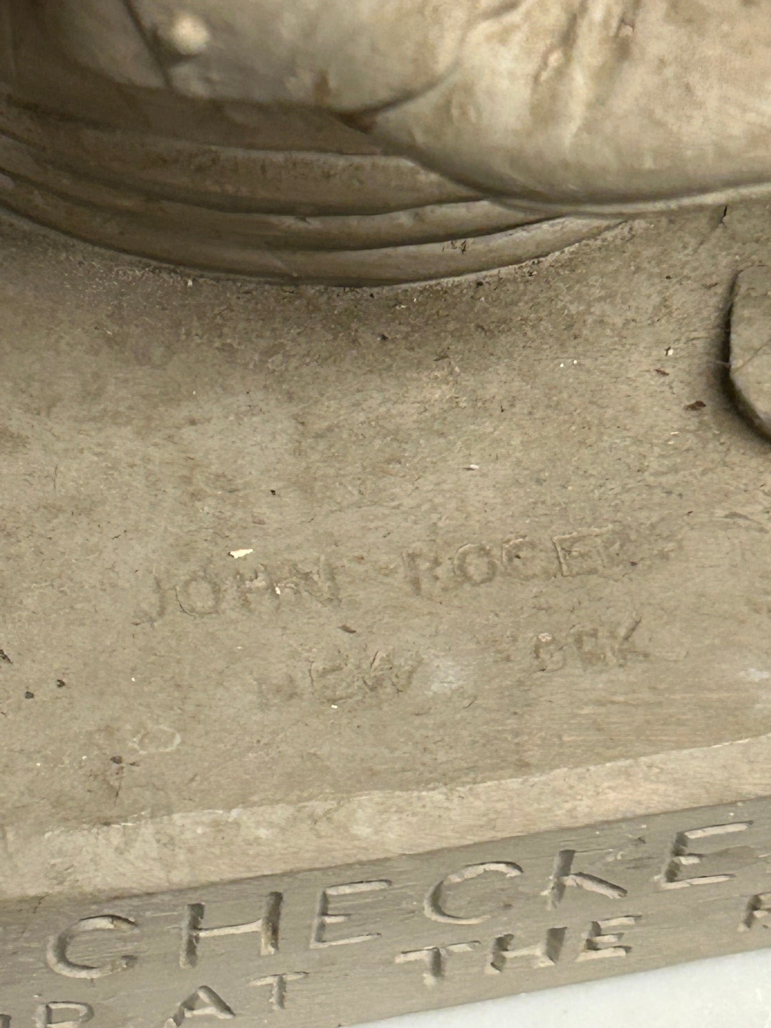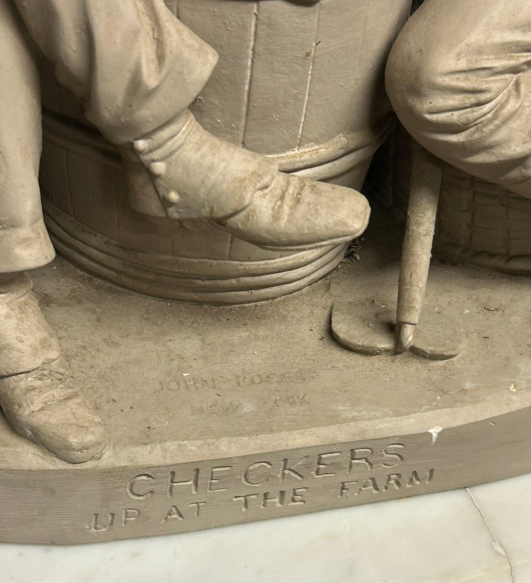 JOHN ROGERS 1875 PLASTER ANTIQUE SCULPTURE "CHECKERS UP AT THE FARM" 22" TALL. CALL, TEXT, OR E-MAIL FOR MORE INFORMATION