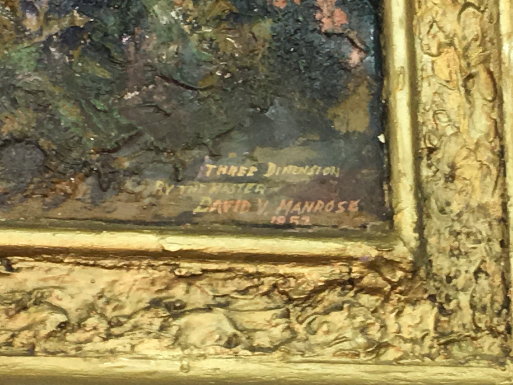KANSAS ARTIST DAVID MANROSE LARGE 1953 "THREE DIMENSION" LANDSCAPE PAINTING. CALL OR TEXT FOR MORE INFORMATION