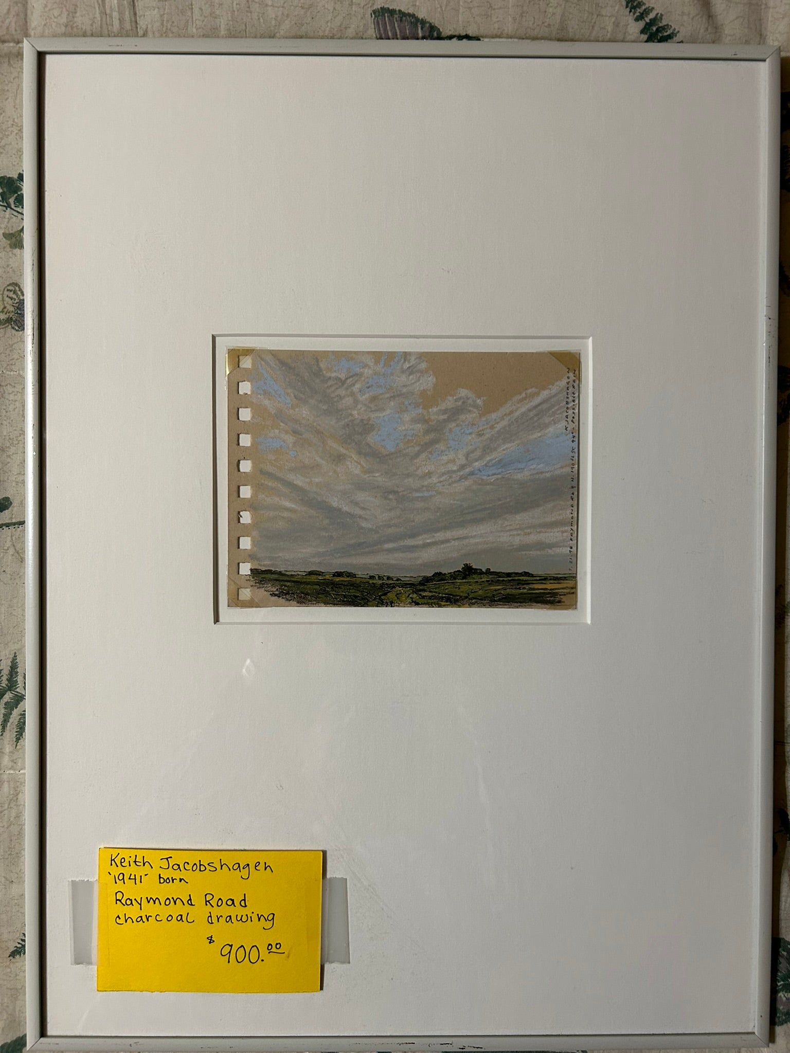 KEITH JACOBSHAGEN NEBRASKA ARTIST CHARCOAL DRAWING OF "POSSIBLE RAIN" RAYMOND ROAD & N. 190TH ST., IMAGE ONLY 5' X 7' AND OVERALL FRAMED SIZE 19" X 15". CALL, TEXT, OR E-MAIL FOR MORE INFORMATION.
