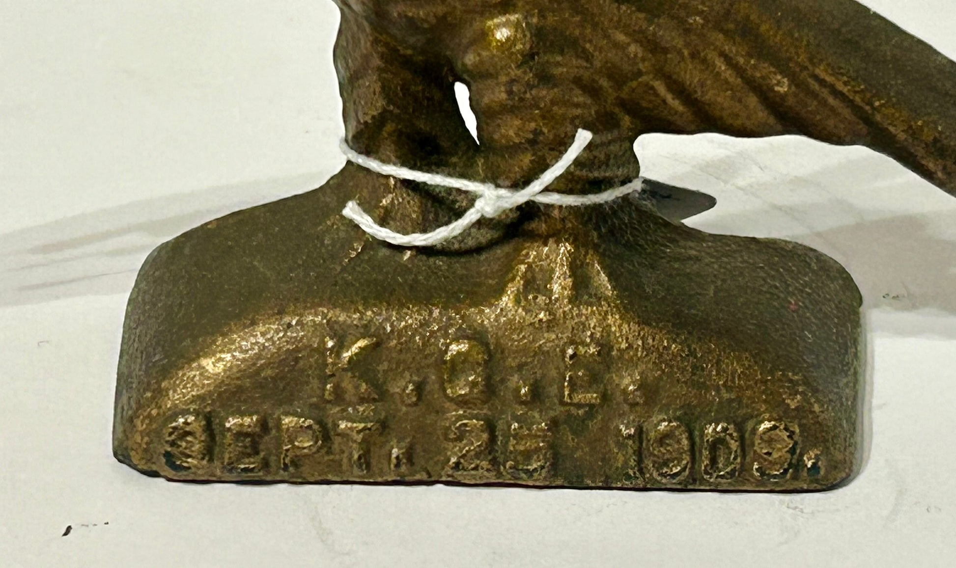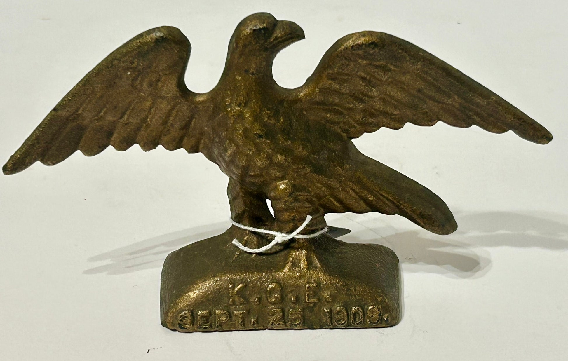 KNIGHTS OF THE GOLDEN EAGLE 1909 CAST IRON FIGURAL EAGLE PAPERWEIGHT 6" LONG. CALL OR TEXT FOR MORE INFORMATION