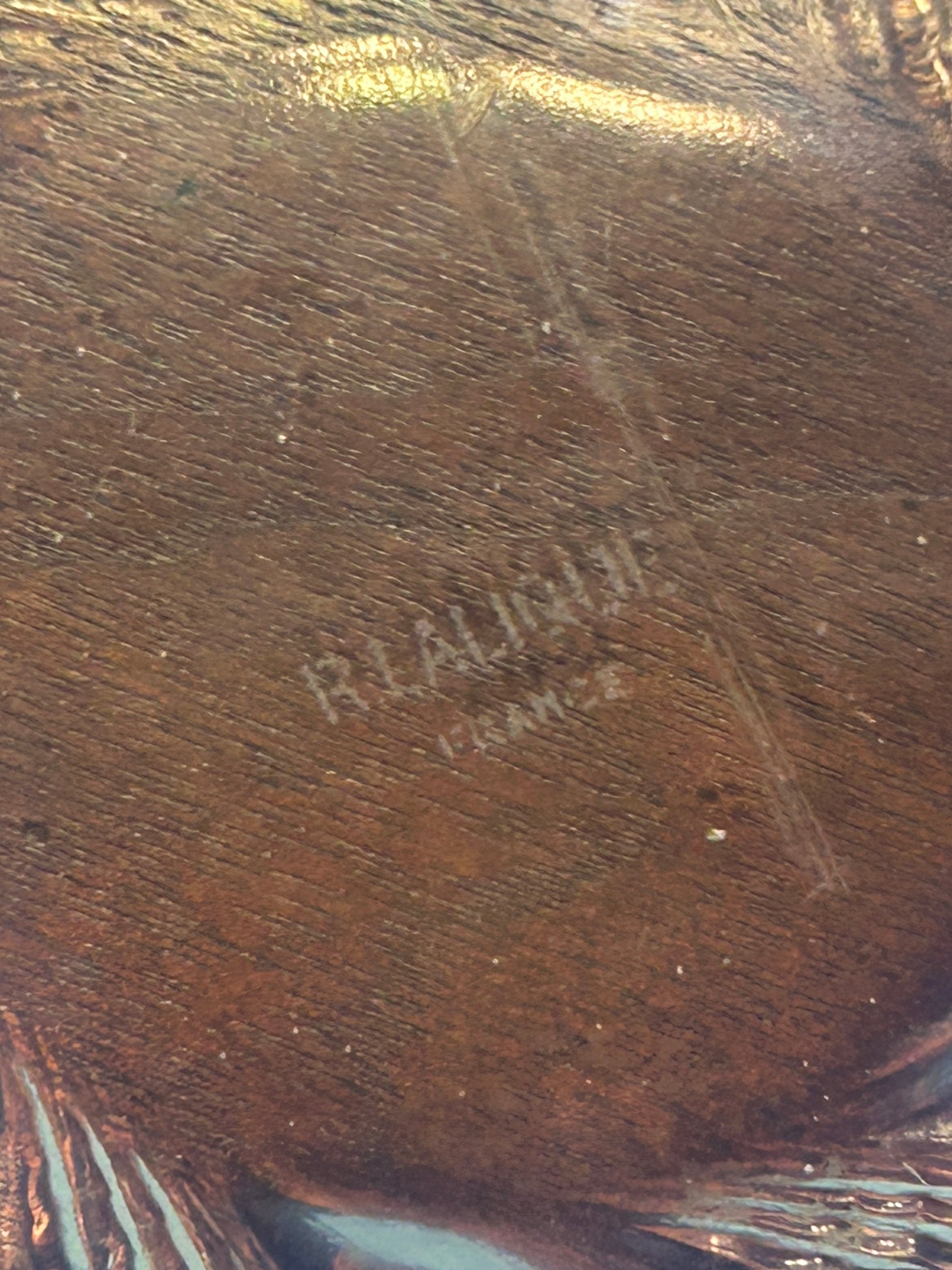 R. LALIQUE SIGNED CIRCA 1930 FLEURONS BLUE OPALESCENT AND CLEAR 10 1/2" DIAMETER PLATE (HAS FEW SCRATCHES IN CENTER). CALL OR TEXT TRIPLE A ANTIQUES FOR A SHIPPING COST BEFORE YOU PURCHASE THIS ITEM