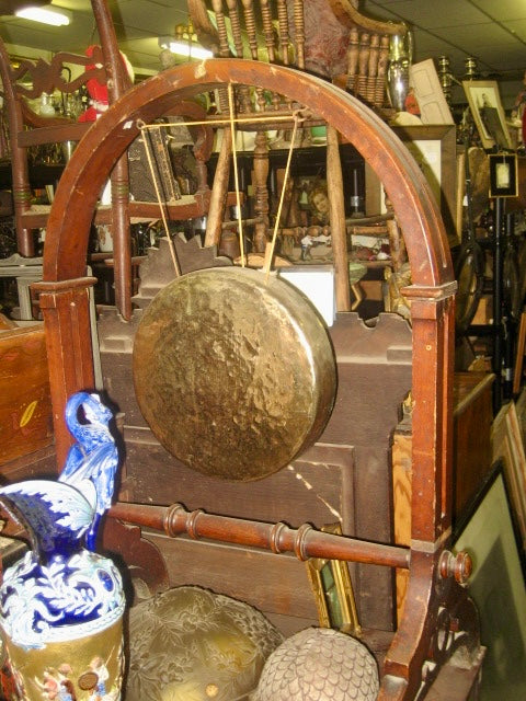 LARGE ANTIQUE WOOD AND BRASS FLOOR MODEL DINNER GONG