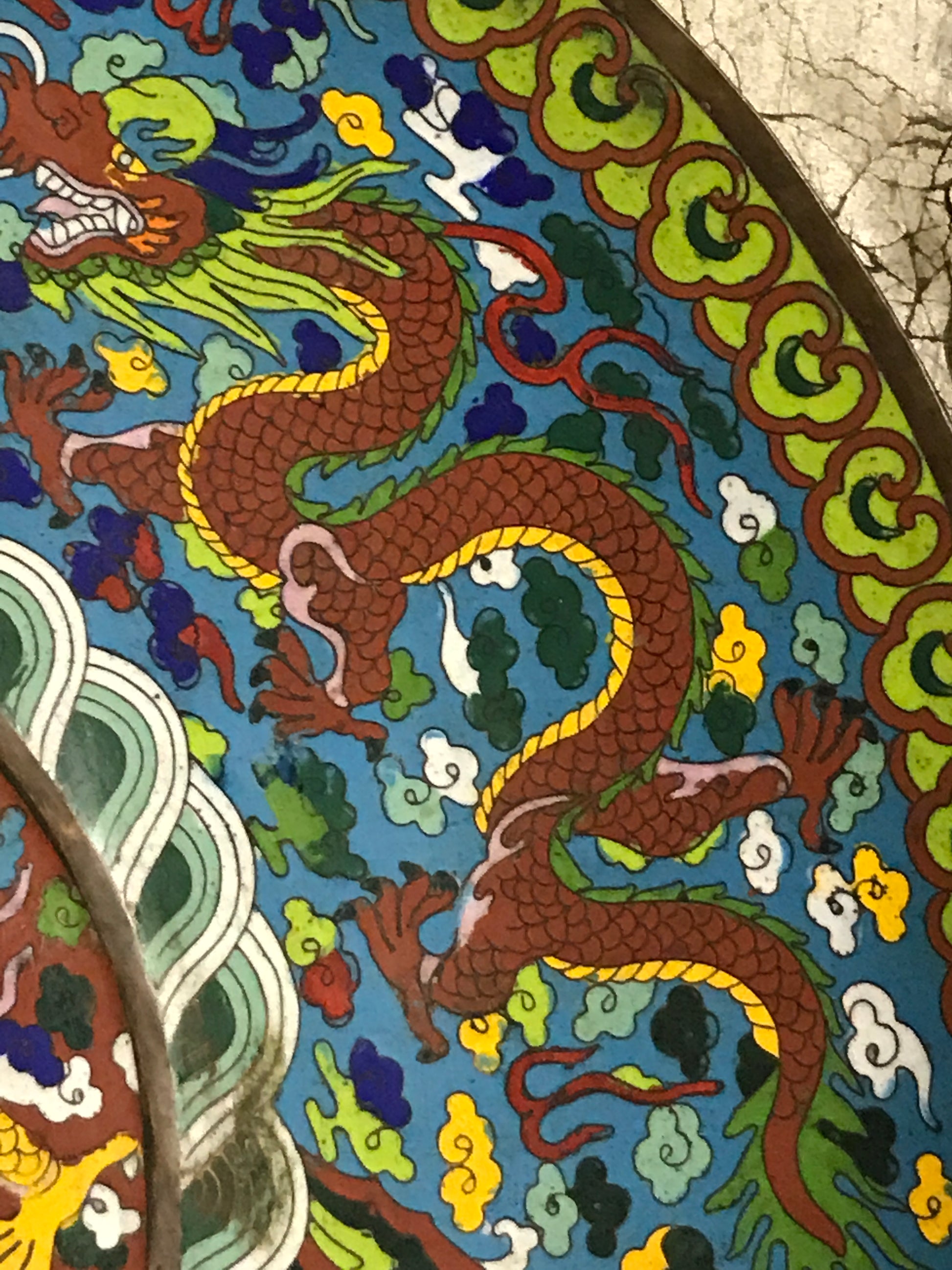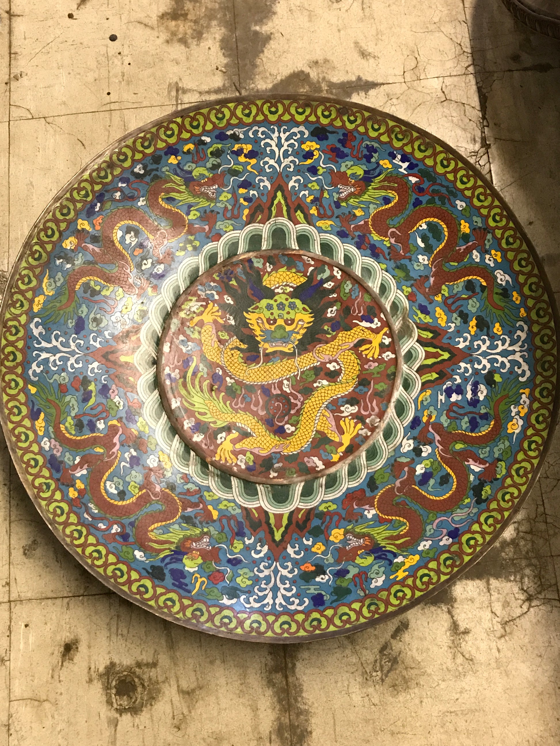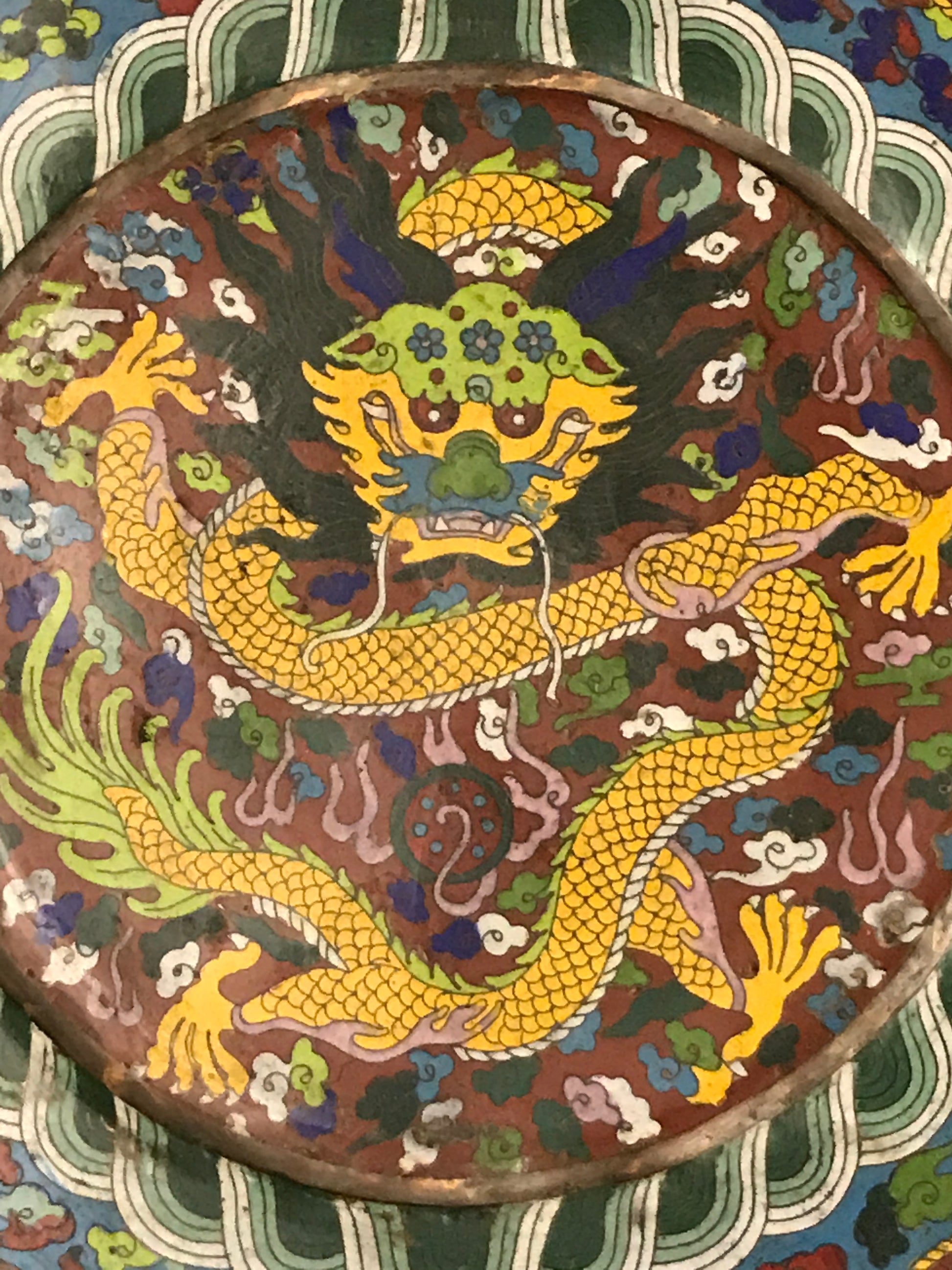 LARGE ORIENTAL CLOISONNE ENAMEL ANTIQUE 24" CHARGER PLATE. CALL, TEXT, OR E-MAIL FOR MORE INFORMATION