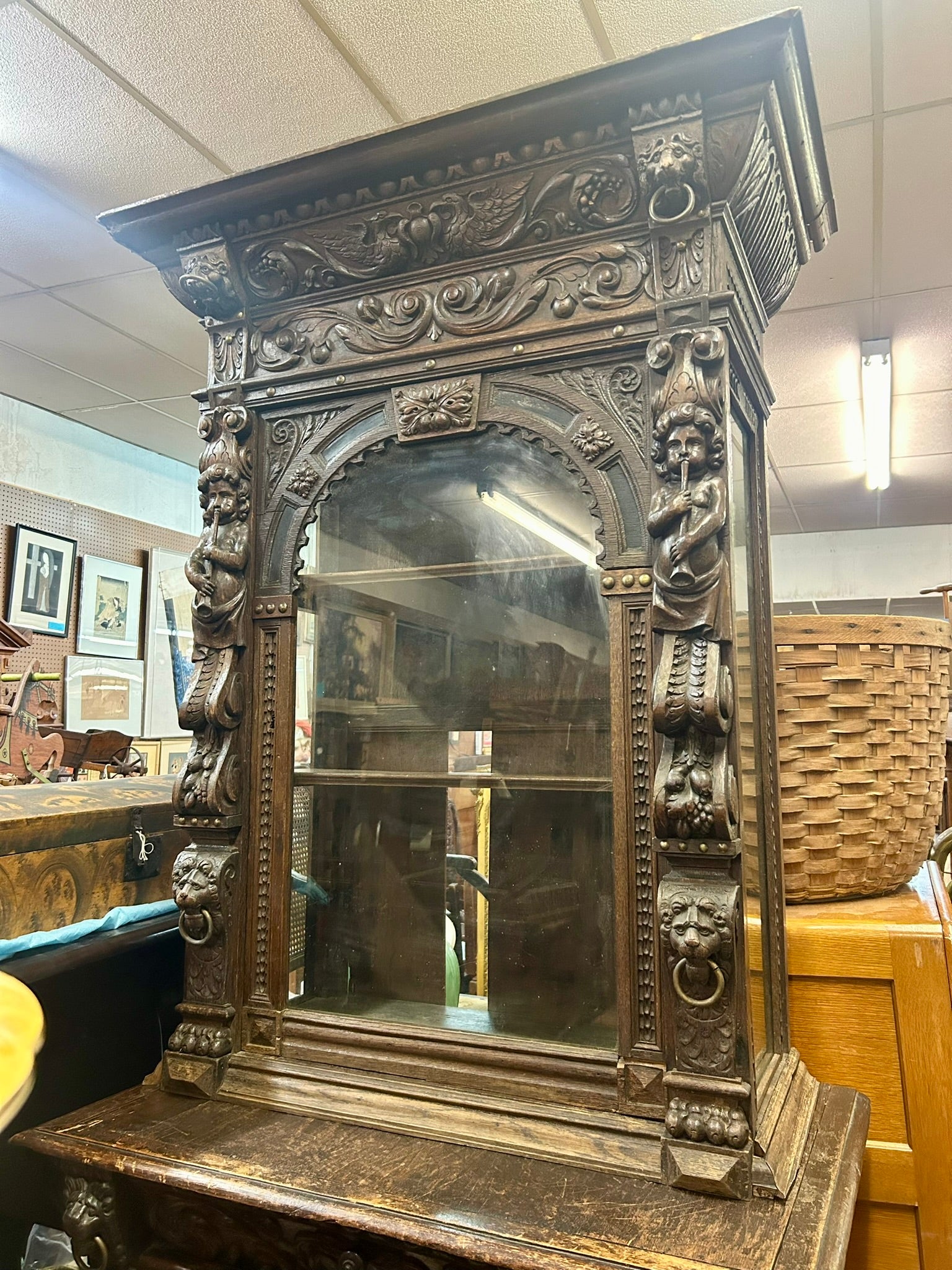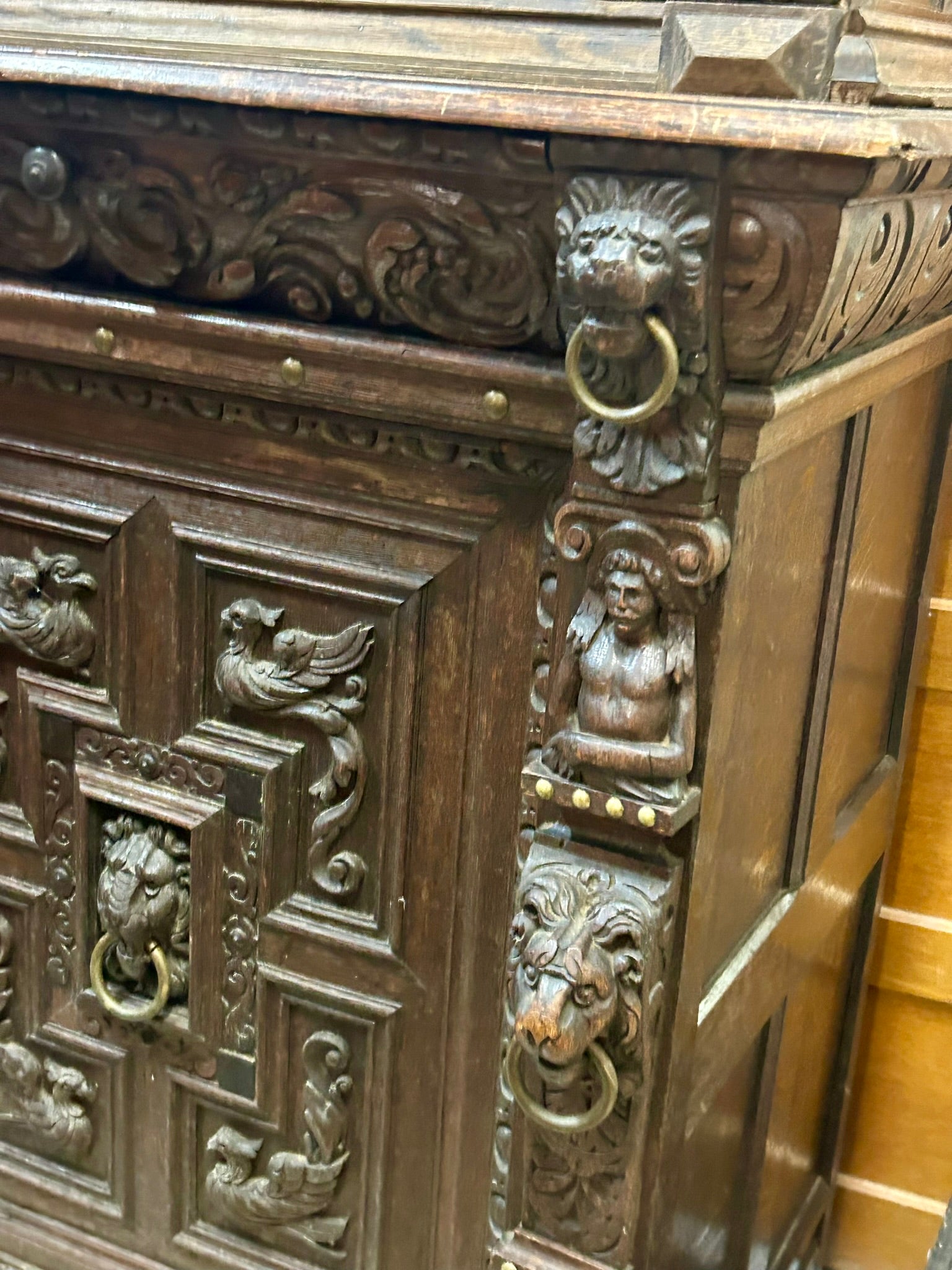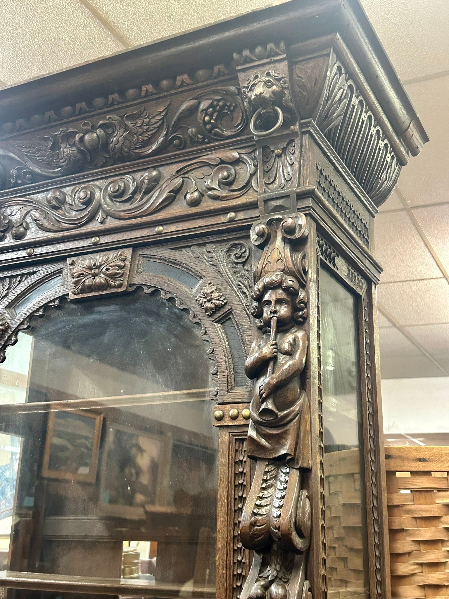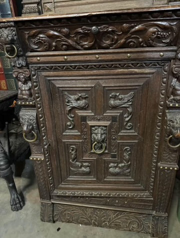 LATE 1800's HEAVILY CARVED GOTHIC DESIGN DARK OAK CABINET