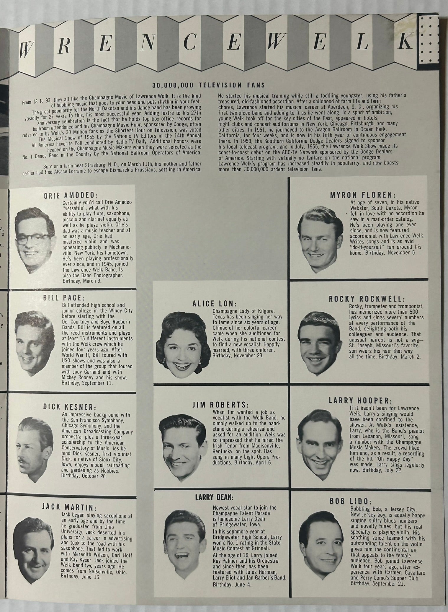 LAWRENCE WELK EARLY PROGRAM SHOWING ORCHESTRA MEMBERS