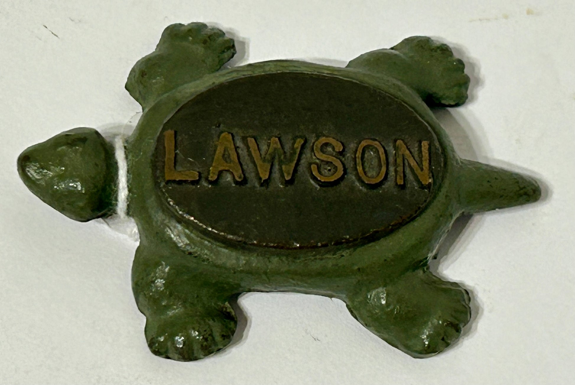 ANTIQUE LAWSON STOVES FIGURAL TURTLE CAST IRON PAPERWEIGHT 2 1/2" LONG. CALL OR TEXT FOR MORE INFORMATION