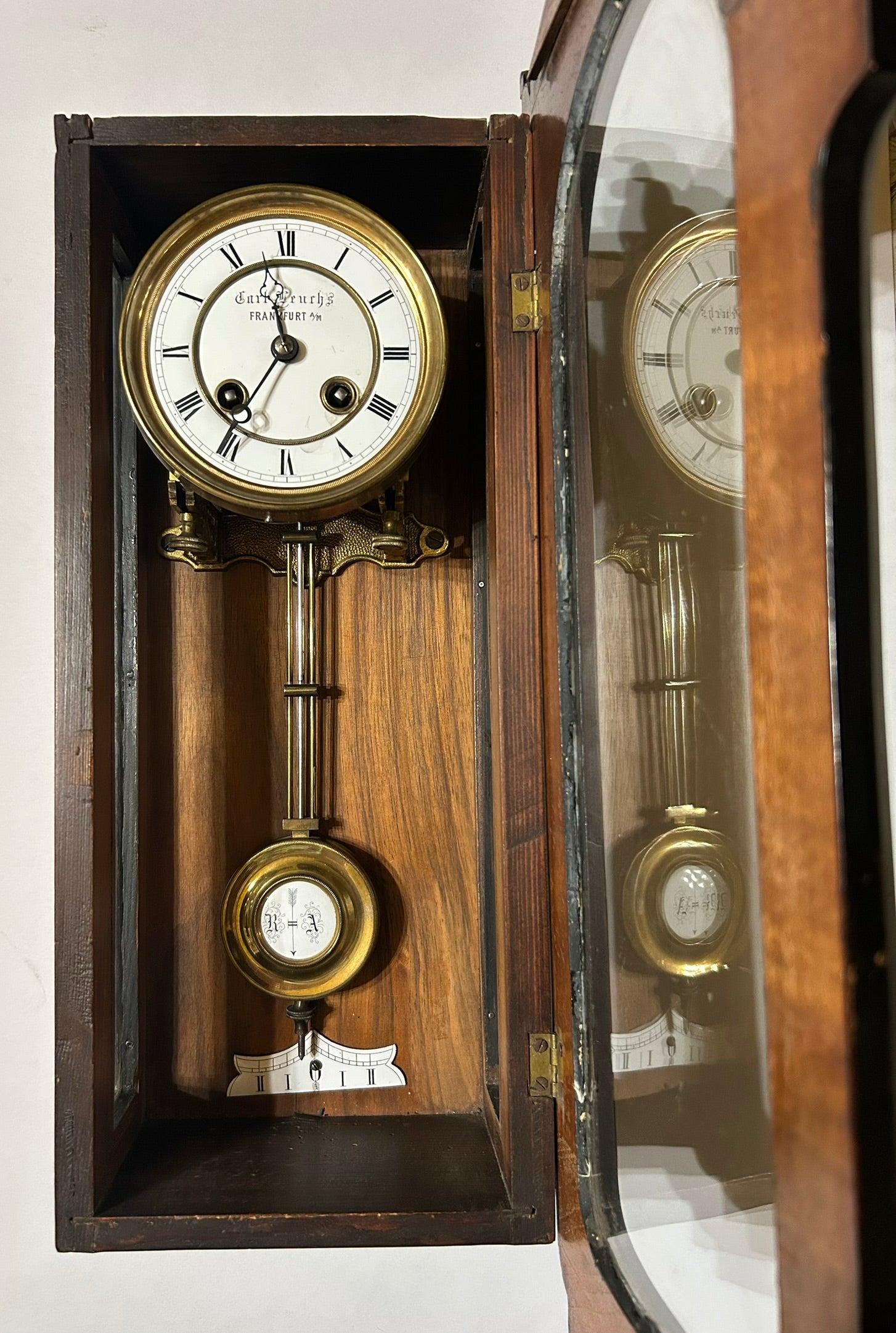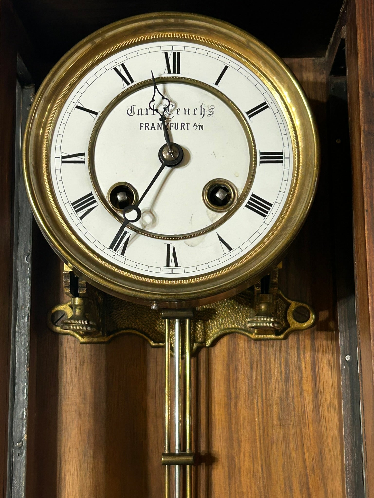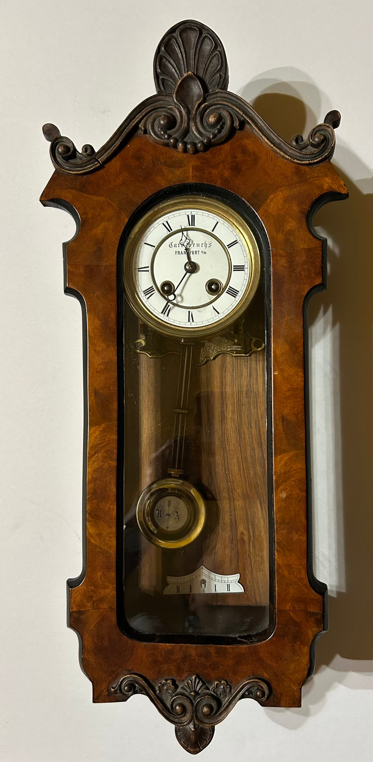 LENZKIRCH ANTIQUE WALL CLOCK IN GOOD WORKING ORDER 21 1/2" TALL. CALL OR TEXT FOR MORE INFORMATION